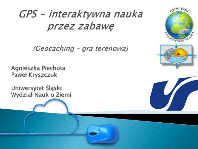 Agnieszka Piechota Paweł Kryszczuk Uniwersytet Śląski Wydział Nauk o Ziemi Geocaching (gr. geo – Ziemia, ang. cache /keʃ/ – chować, skrytka, schowek, kryjówka) to gra terenowa dla użytkowników GPS polegająca na poszukiwaniu "skarbów" ukrytych przez jej innych uczestników. Skarby te to tzw. skrzynki lub kesze, które zostały odpowiednio zabezpieczone. Zawierają one dziennik znalezień oraz drobne fanty, którymi wymieniają się kolejni znalazcy. www. globmedium.com Geocaching Historia rozpoczyna się 1 maja 2000 roku… 3 maja 2000 – ukryty pierwszy skarb – Dave Ulmer Mikro Duża Mała Normalna Bardzo duża Typy Skrzynek: • tradycyjna - znajdowana na podstawie współrzędnych • multicache - składa się z jednego lub więcej etapów pośrednich oraz etapu finałowego • quiz - wymaga rozwiązania zagadki: wykonania obliczeń, rozwiązania łamigłówki itp. • mobilna - każdy jej znalazca zobowiązany jest do przeniesienia ja w inne miejsce • skrzynka nietypowa - niepasująca do pozostałych typów skrzynek • wydarzenie (event)- używana do oznaczenia spotkania geocacherów w danym miejscu i danym czasie • own cache - nie posiada swojego stałego miejsca, do jej znalezienia potrzebny jest kontakt z założycielem skrzynki i wykonania łamigłówki, poleceń lub dodatkowych czynność • wirtualna - skrzynka, która do zaliczenia wymaga udania się w dane miejsce, najczęściej odczytania napisu lub zrobieniu zdjęcia Typy Skrzynek: Dostępne serwisy geocachingowe *: - geocaching.pl opencachnig.pl opencaching.com geocaching.com navicache.com WayPointgame.pl gpsgames.org * serwisy Opencaching czy Geocaching mają również swoje odpowiedniki w innych krajach np. geocaching.ru czy opencahing.de możliwość poznania ciekawych miejsc oraz związanej z nimi historii okazja do aktywnego spędzania czasu na świeżym powietrzu rozwój kreatywności i logicznego myślenia podczas znajdowania i ukrywania skrzynek ćwiczenie umiejętności orientacji w terenie nauka obsługi odbiorników GPS i aplikacji mobilnych 27 612 skrzynki poszukiwane prawie 1 616 699 razy !!! Zmiana liczby skrzynek w poszczególnych województwach w ciągu 1 roku 3500 3000 2500 2000 1500 1000 500 0 2014 2015 ( źródło: www.opencaching.pl ) Poszukiwania skrzynek w poszczególnych województwach 300000 250000 200000 150000 100000 50000 0 ( źródło: www.opencaching.pl ) - turystyczny odbiornik GPS, - smartphone ze specjalną aplikacją, - przeglądarka w telefonie. Znajdź i zainstaluj aplikację w urządzeniu: Znajdź swoją lokalizację: Wybierz interesującą Cię skrzynkę Przeczytaj jej opis, i ruszaj na poszukiwania… Na koniec zaloguj jako znalezioną na swoim koncie Możesz również poszukiwać skrzynek dzięki przeglądarce internetowej: Wybierz skrzynkę Przeczytaj jej opis, zacznij poszukiwania – zaufaj intuicji Różnorodność tematyczna skrzynek ,,Projekt Oberschlesien’’ KULTURA REGIONU - Przybliżenie ślunskiej godki KULTURA REGIONU ,,Projekt Oberschlesien’’ ,,Projekt Oberschlesien’’ KULTURA REGIONU BRELE: O KESZU: Kesz niy jest trudny, ino uważej bo jak po niego poleziesz to wleziesz do rezerwatu. Bez to krzina jest fest mało inwazyjno, pamiyntej że w tym lesie żeś jest ino gościym, wiec szukając kesza nie narób niepoczebnego bajzlu. Jak przidziesz na kordy, to kesz jest 20m od nich we dupnym spruchniałym drzewie. KULTURA ,,Szlak zabytków techniki’’ KULTURA/HISTORIA ,,Szlak zabytków techniki’’ PRZYRODA ,,Ścieżka ornitologiczna’’ PRZYRODA ,,Ścieżka ornitologiczna’’ PRZYRODA ,,90 lat Lasów Państwowych’’ PRZYRODA ,,90 lat Lasów Państwowych’’ HISTORIA ,,Szlakiem Wołyńskiej Brygady Kawalerii 1-3 września 1939’’ Agnieszka Piechota Paweł Kryszczuk Uniwersytet Śląski Wydział Nauk o Ziemi
