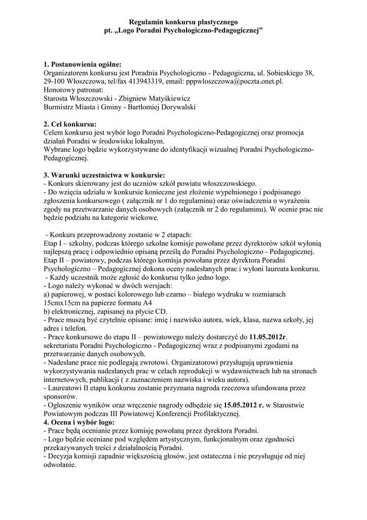 Regulamin konkursu plastycznego pt. „Logo Poradni