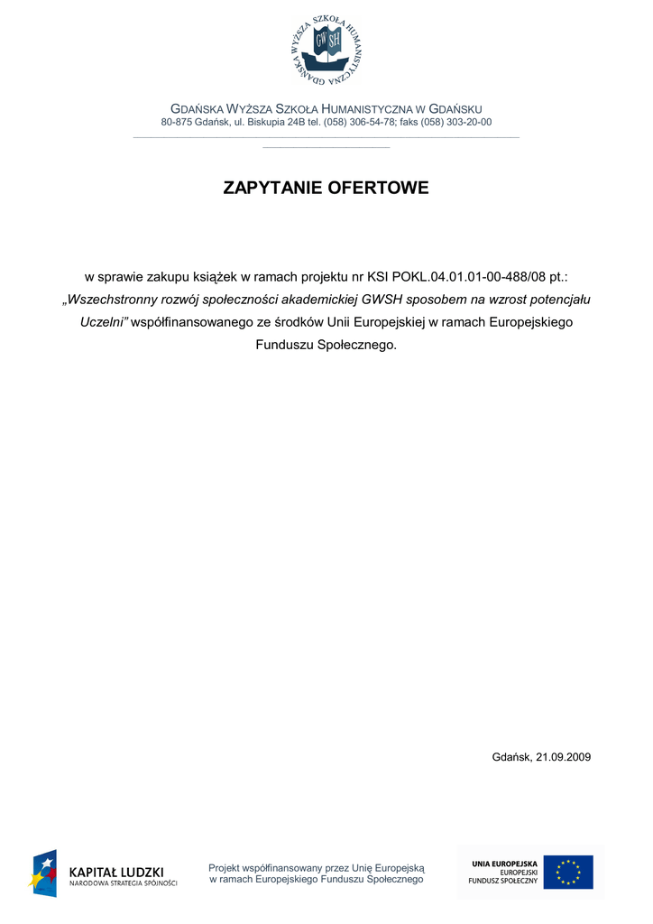 zapytanie ofertowe - Gdańska Wyższa Szkoła Humanistyczna