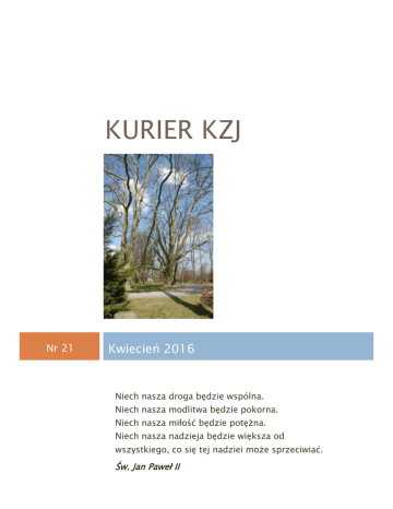 KURIER KZJ Nr 21 Kwiecień 2016 Niech nasza droga będzie wspólna. Niech nasza modlitwa będzie pokorna. Niech nasza miłość będzie potężna. Niech nasza nadzieja będzie większa od wszystkiego, co się tej nadziei może sprzeciwiać. Św. Jan Paweł II Nr 21 Kurier Koleżeńskiego Zjednoczenia Jazłowieckiego 1 CZERWCOWY PIKNIK WE WRZOSOWIE W przedostatnią sobotę czerwca Siostry we Wrzosowie urządzają piknik rodzinny z wieloma atrakcjami. Chcemy przy tej okazji wrócić do dawnej tradycji loterii fantowej w nieco zmienionej formule (nie może to być stricte loteria ze względu na przepisy finansowe). W związku z tym ogłaszamy zbiórkę fantów na ten cel. Jest jeszcze trochę czasu, więc miejsce dostarczania fantów podamy w czerwcowym kurierku, ale bardzo prosimy o wcześniejsze przygotowanie jakichś drobiazgów, które mogą sprawić radość. Zarząd KZJ OGŁOSZENIE Wiele z Was zapewne poznało bądź widziało w Szymanowie podopieczną Sióstr: Marysię Ukrainkę, która właśnie kończy polonistykę i bardzo potrzebuje pracy. Najbardziej oczywiście jakiejś stałej, jeżeli już nie w zawodzie, to może jakieś zajęcie pokrewne (biblioteka, archiwum itp). Może być opieka nad dzieckiem, czy osobą starszą - coś, co zapewni środki utrzymania. Niemniej przydałaby się jej nawet jakaś praca dorywcza typu np. sprzątanie. Obecnie mieszka ona w Warszawie u jednej ze starszych wychowanek, ale : po pierwsze: gospodyni przecież nie może jej utrzymywać, a po drugie:to mieszkanie jest na ograniczony czas (do lata), więc poszukujemy również dla niej jakiegoś miejsca zamieszkania. Może dałoby się to z sobą połączyć (pracę za mieszkanie?). Bardzo jest o nią zatroskana S.Janina i bardzo liczy na naszą pomoc w tym zakresie Marta Mieszkowska Prace konkursowe – opowieści o zwyczajach szkół niepokalańskich PRZYPIS, Agnieszka Nagalska Artykuły moich uczennic otworzyły we mnie wspomnienia. Klaudia napisała o Pani Kozłowej, a ja pamiętam i Ją i jeszcze inną Panią. Do niej chodziłyśmy tylko w sobotę, ponieważ mieszkała bardzo daleko i na pewno podczas zwykłej rekreacji nie zdążyłybyśmy z powrotem. Więc mijałyśmy chałupę Pani Kozłowej, potem ostatni dom we wsi i dalej szłyśmy ścieżką przez pola aż po horyzont (który ciągle się przesuwał). Na końcu naszej trasy (bo pola się ciągnęły dalej) był dom otoczony drzewami a w podwórku studnia. W domu mieszkała samotna kobieta, w głuszy bez elektryczności, bo jak tu ciągnąć linię tak daleko poza wieś? Zauważyłam, że jest jakaś dostojna, w koku z siwych włosów i z pięknymi rękoma (na wsi!). Zaczęłyśmy rozmawiać. Od razu można było poznać, że nie jest stąd. Okazało się, że mieszkała przed wojną w Warszawie, na ulicy Filtrowej, co mnie ucieszyło, bo też jestem z Ochoty. Posypały się Nr 21 Kurier Koleżeńskiego Zjednoczenia Jazłowieckiego 2 wspomnienia z powstania… słuchałam łapczywie, bo moja Mama też zaczynała powstanie na Placu Narutowicza. Nigdy się nie dowiedziałam, kto to był? Dlaczego tu? Dlaczego tak samotnie?…. Klaudia napisała, że Siostry dały im, tym pomagającym dziewczynkom, ale na co dzień mało subordynowanym uczennicom, nagrodę. Świetna była reakcja mojego męża: „Siostry wszystko widzą”. We wspomnieniu Moniki pojawiło się nazwisko Macieja Prusa, słynnego reżysera teatralnego, którego rzeczywiście przywiozłam do Szymanowa. Ponieważ był stan wojenny, więc wystawiłyśmy „Dziadów” cz. III a dokładniej scenę więzienną – tak na czasie! Pokazałyśmy mu to przedstawienie. Ewa Staniaszek dzielnie nauczyła się opowiadania Sobolewskiego na pamięć… i przy słowach: „…łańcucha podźwignąć nie może…” upuściła łańcuch od… krowy, który trzymała w ręku. Maciek szeptem spytał mnie, kto to wymyślił, a kiedy odpowiedziałam, że ja, powiedział: okropne. Wysłuchał do końca i z emocją zerwał się, jak przystało na wielkiego artystę. Zaczął chodzić po sali (rekreacyjnej) i krytykować wszystko, co się dało, Ewa już płakała. Zapytał: Dziewczyny, co Wy gracie? Przecież to jest o Was, o młodych ludziach, którzy są w więzieniach za przekonania polityczne. Genialność takiego odczytania tekstu w połączeniu z rzeczywistością stanu wojennego podziałała na dziewczyny tak, że zaczęły grać lekko wspierane przez tego wybitnego reżysera Macieja Prusa. Nie wyobrażacie sobie, jak one to zagrały! Tekst mówiły, a nie recytowały – były współczesnymi dziewczynami w spodniach, poruszającymi się swobodnie i naturalnie, a nie pensjonarkami przebranymi za filaretów. To była dla mnie lekcja pokory i wszystkie inne lekcje razem wzięte. Ewa dzisiaj jest nauczycielką języka polskiego i zapewne stojąc po mojej stronie pamięta swoją lekcję. A „Dziady” M. Prusa, które widziałam w Teatrze Dramatycznym w 1979r., pamiętam do dziś, również dlatego, że je dogłębnie przegadałam w klasztorze sióstr franciszkanek z samym reżyserem, a potem z Haliną Mikołajską w nocy, w… Szymanowie. Skoro już o teatrze mowa, to jeszcze słów kilka o tym, jak się wybrałyśmy do teatru. Najpierw zaproponowałam moim uczennicom wyjazd na „Pana Cogito” w Teatrze Powszechnym – Zbigniew Zapasiewicz recytował wiersze Herberta. Trochę się bałam, no bo taki trud dla jednego aktora bez scenografii i kostiumów… Ale moje uczennice chciały pojechać na to przedstawienie. Nr 21 Kurier Koleżeńskiego Zjednoczenia Jazłowieckiego 3 Po obiedzie więc szybko się przebrały (w galowe stroje? -chyba nie- nie pamiętam). Najpierw wsiadłyśmy w autobus, potem w pociąg, który wtedy przyjeżdżał, kiedy chciał, następnie w tramwaj z Dworca Śródmieście w kierunku Pl. Waszyngtona. I już byłyśmy! Godzinne przedstawienie (chyba tak?) – i z powrotem do domu- najpierw tramwaj, potem pociąg, wreszcie po ciemku, w nocy 6 km na piechotę. W łóżkach
