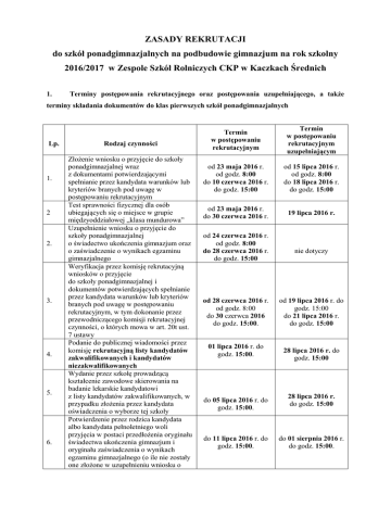 Zasady rekrutacji 2016-2017 - zespół szkół rolniczych centrum