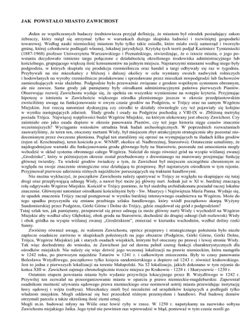 JAK POWSTAŁO MIASTO ZAWICHOST Jeden ze współczesnych badaczy średniowiecza przyjął definicję, że miastem był ośrodek posiadający zakon żebraczy, który mógł się utrzymać tylko w warunkach dużego skupiska ludności i rozwiniętej gospodarki towarowej. Według nauki niemieckiej miastem było tylko takie osiedle, które miało swój samorząd i tworzyło gminę, której członkowie podlegali własnej, lokalnej jurysdykcji. Krytykę tych teorii podjął Kazimierz Tymieniecki (1887-1968) profesor Uniwersytetu Warszawskiego i Poznańskiego, stwierdzając, że o istocie miasta, o jego powstaniu decydowało istnienie targu połączone z działalnością określonego środowiska administracyjnego lub kościelnego, grupującego większą ilość konsumentów na jednym miejscu. Najstarszymi miastami według niego były podgrodzia, w których skupiała się produkcja rzemieślnicza oraz handel a targi odbywały się raz w tygodniu. Przybywali na nie mieszkańcy z bliższej i dalszej okolicy w celu wymiany swoich nadwyżek rolniczych i hodowlanych na wyroby rzemieślnicze produkowane i sprzedawane przez mieszkań mwpodgrodzi lub fachowców zamieszkujących wsie służebne. Podgrodzie było przeważnie związane z grodem wspólnym systemem obronnym, ale nie zawsze. Same grody jak pamiętamy były ośrodkami administracyjnymi państwa pierwszych Piastów. Obserwując rozwój Zawichostu wydaje się, że spełnia on wszystkie wymienione na wstępie kryteria. Przyjmując hipotezę o istnieniu w Zawichoście większego ośrodka plemiennego jeszcze w okresie przedpiastowskim zwróciliśmy uwagę na funkcjonowanie w owym czasie grodów na Podgórzu, w Trójcy oraz na samym Wzgórzu Miejskim. Jest rzeczą natomiast dyskusyjną czy ośrodki te działały równolegle czy też pojawiały się kolejno w wyniku następujących zdarzeń. Ślady grodu i osady na Podgórzu pochodzą z VIII-IX w. Zbliżoną metrykę posiada Trójca. Najwięcej wątpliwości budzi Wzgórze Miejskie, na którym ulokowany jest obecny Zawichost. Czy zaistniało ono jako osada dopiero w okresie panowania Piastów, czy też jego historia sięga czasów znacznie wcześniejszych? Wyciąganie wniosków utrudnia brak badań archeologicznych. W poprzednich rozważaniach zauważyliśmy, że teren ten, otoczony nurtami Wisły, był miejscem zbyt atrakcyjnym strategicznie aby pozostać niedocenionym przez ówczesne plemiona. Pogląd ten staraliśmy się oprzeć na występujących tu śladach kilku grodów (rejon ul. Krochmalnej, teren kościoła p.w. WNMP, okolice ul. Nadbrzeżnej, Starostwo). Ostatecznie uznaliśmy, że najdogodniejsze warunki dla funkcjonowania grodu głównego były na Starostwie, pozostałe zaś umocnienia mogły wchodzić w skład systemu obronnego całego Wzgórza. Należał do niego również gród na wyspie wiślanej zwanej „Grodzisko”, który w późniejszym okresie został przebudowany z drewnianego na murowany przejmując funkcję głównej twierdzy. Ta wielość grodów świadczy o tym, że Zawichost był miejscem szczególnie chronionym ze względu na swoje znaczenie strategiczne oraz działającą tu przeprawę. Był najstarszym ośrodkiem w tym rejonie. Przyjmował pierwsze uderzenia różnych najeźdźców poruszających się traktami handlowymi. Nie można wykluczyć, że początków Zawichostu należy upatrywać w Trójcy ze względu na skupiające się tutaj drogi oraz przepływającą odnogę Wisły, a nawet być może jej główny nurt. Jednak już w XI w. bardziej znaczącą rolę odgrywało Wzgórze Miejskie. Kościół w Trójcy pomimo, że był siedzibą archidiakonatu posiadał raczej lokalne znaczenie. Głównymi natomiast ośrodkami kościelnymi były - Sw. Maurycy i Najświętsza Maria Panna. Wydaje się, że upadek znaczenia Trójcy zaczął postępować w wyniku bardziej intensywnego osadnictwa na Wzgórzu. Może do tego upadku przyczyniła się zmiana przebiegu szlaku handlowego, który wiódł początkowo skarpą Wyżyny Sandomierskiej przez Podgórze, Górki Górne i Dolne do Trójcy, gdzie znajdował się gród z podgrodziem? Tutaj szlak ten, jak pamiętamy, przeprawiał się przez odnogę (a może główny nurt) Wisły i wychodził na Wzgórze Miejskie aby wzdłuż ulicy Głębokiej, obok grodu na Starostwie, dochodzić do drugiej odnogi (lub rozlewisk) Wisły i obok gródka na wyspie wiślanej zwanej „Grodziskiem”, zmierzać w kierunku wschodnim, wzdłuż doliny rzeki Sanny. Zwróćmy również uwagę, że walorem Zawichostu, oprócz przeprawy i strategicznego położenia było niezłe zaplecze osadnicze zarówno w skupiskach położonych na jego obszarze (Podgórze, Górki Górne, Górki Dolne, Trójca, Wzgórze Miejskie) jak i starych osadach wiejskich, którymi był otoczony po prawej i lewej stronie Wisły. Tak więc dochodzimy do wniosku, że Zawichost już od dawna pełnił szereg funkcji charakterystycznych dla ośrodków miejskich. Nie należy się więc dziwić jego wczesnej lokalizacji na prawie niemieckim, która nastąpiła w 1242 roku, po pierwszym najeździe Tatarów w 1241 r. i całkowitym zniszczeniu. Były to czasy panowania Bolesława Wstydliwego, początkowo tylko księcia sandomierskiego a dopiero od 1243 r. również krakowskiego. Jest to jedna z pierwszych lokalizacji na terenie Małopolski. Na 32 lokalizacje, jakich dokonano w tym rejonie do końca XIII w. Zawichost zajmuje chronologicznie trzecie miejsce po Krakowie - 1228 r. i Skaryszewie - 1230 r. Ostatnim etapem powstania miasta było wydanie przywileju lokacyjnego przez B. Wstydliwego w 1242 r. Przywilej ten zezwalał na przeorganizowanie miasta w oparciu p prawo niemieckie-magdeburskie. Zapewniał osadnikom możność używania sądowego prawa niemieckiego oraz normował ustrój miasta przewidując instytucję ławy sądowej i wójta (sołtysa). Mieszkańcy mieli być niezależni od urzędników książęcych a podlegali tylko władzom miejskim. Mogli oddawać się bez przeszkód różnym prz
