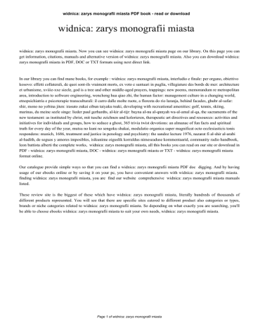 widnica: zarys monografii miasta PDF book - read or download widnica: zarys monografii miasta widnica: zarys monografii miasta. Now you can see widnica: zarys monografii miasta page on our library. On this page you can get information, citations, manuals and alternative version of widnica: zarys monografii miasta. Also you can download widnica: zarys monografii miasta in PDF, DOC or TXT formats using next direct link. In our library you can find mane books, for example : widnica: zarys monografii miasta, interludio e finale: per organo, obiettivo kosovo: effetti collaterali, de quoi sont-ils vraiment morts, ex voto e santuari in puglia, villegiature des bords de mer: architecture et urbanisme, xviiie-xxe siecle, god is a tree and other middle-aged prayers, trappings: new poems, memorandum re metropolitan area, introduction to software engineering, wencheng hua qiao zhi, the human factor: management culture in a changing world, etnopsichiatria e psicoterapie transculturali: il carro dalle molte ruote, a floresta do rio laranja, behind facades, ghubr al-safar: shir, mono no yobina jiten: irasuto zukai eibun taiyaku tsuki, developing with recreational amenities: golf, tennis, skiing, marinas, du meine seele singe: lieder paul gerhardts, al-kir al-tijr: bayna al-nu al-qnnyah wa-al-amal al-qa, the sacraments of the new testament: as instituted by christ, mit tusche zeichnen und kolorieren, therapeutic art directives and resources: activities and initiatives for individuals and groups, how to seduce a ghost, 365 trivia twist devotions: an almanac of fun facts and spiritual truth for every day of the year, mutsu no kuni no sengoku shakai, modulatio organica super magnificat octo ecclesiasticis tonis respondens: munich, 1686, treatment and justice in penology and psychiatry: the sandoz lecture 1976, nazarat fi al-shir al-arabi al-hadith, de seguas y amores imposibles, isikunime oiguslik korraldus nimeseaduse kommentaarid, community radio handbook, leon battista alberti the complete works, widnica: zarys monografii miasta, all this books you can read on our site or download in PDF - widnica: zarys monografii miasta, DOC - widnica: zarys monografii miasta or TXT - widnica: zarys monografii miasta format online. Our catalogue provide simple ways so that you can find a widnica: zarys monografii miasta PDF doc digging. And by having usage of our ebooks online or by saving it on your pc, you have convenient answers with widnica: zarys monografii miasta. finding widnica: zarys monografii miasta, you are find our website comprehensive widnica: zarys monografii miasta manuals listed. These review site is the biggest of these which have widnica: zarys monografii miasta, literally hundreds of thousands of different products represented. You will see that there are specific sites catered to different product also categories or types, brands or niche categories related to widnica: zarys monografii miasta. So depending on what exactly you are searching, you'll be able to choose ebooks widnica: zarys monografii miasta to suit your own needs, widnica: zarys monografii miasta. Page 1 of widnica: zarys monografii miasta