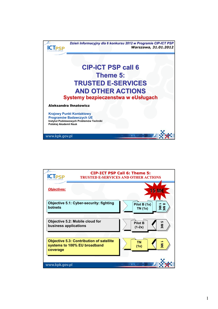 CIP-ICT PSP call 6 Theme 5: TRUSTED E