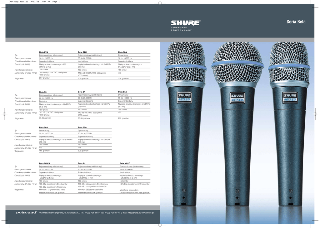 Katalog Shure seria Beta