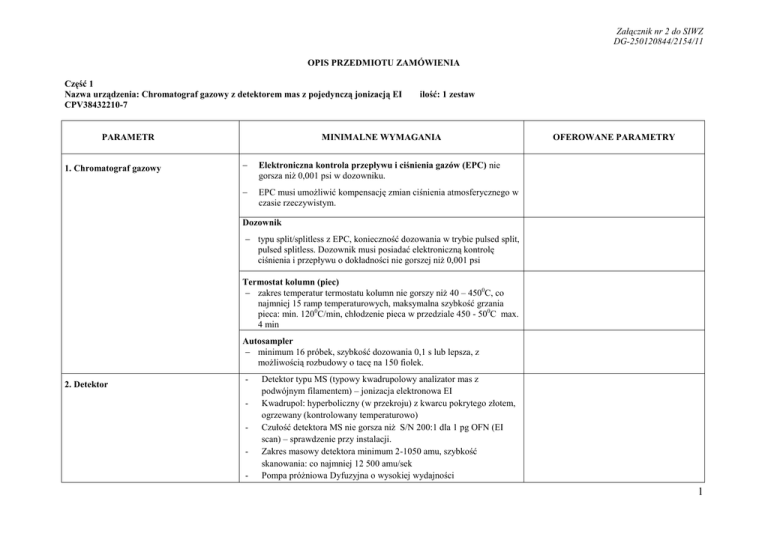 Załącznik nr 2 do SIWZ DG-250120844/2154/11 OPIS