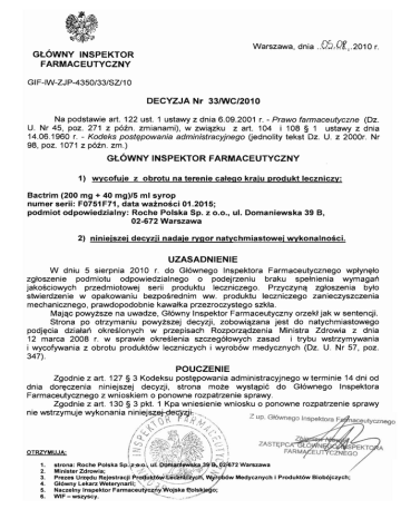W dniu 5 sierpnia 2010 r. do G~6wnego Inspektora Farmaceutycznego wplyn~~o
