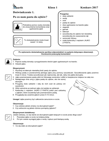 Klasa 1 Konkurs 2017 Doświadczenie 1. Po co nam pasta do zębów?