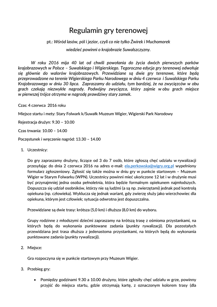 Regulamin gry terenowej - Wigierski Park Narodowy