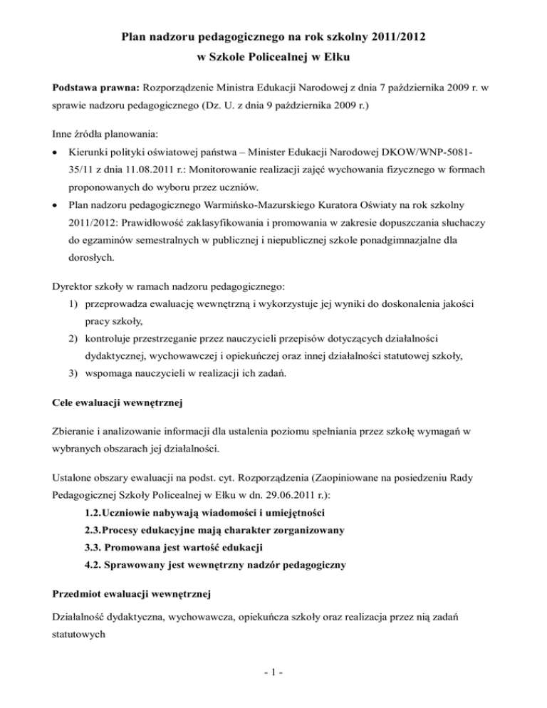 Plan nadzoru pedagogicznego na rok szkolny 2011/2012