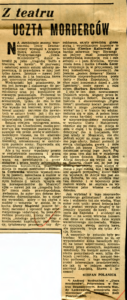N'ie wyszło też teatrowti.. który .próbowal znaleźl: zar:>wno dla z.awartych w .sztuca treści jak i dla autons.ki:::11 sugestii ln.sccnizacyjnych