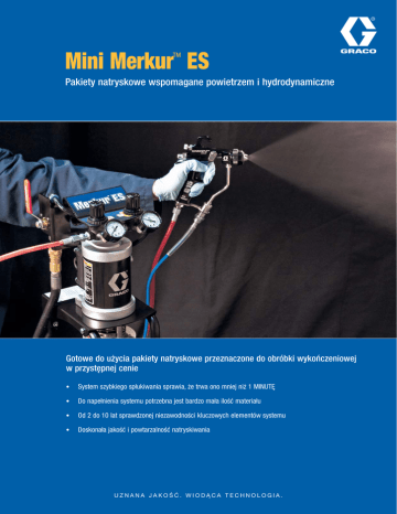 Mini Merkur ES TM Pakiety natryskowe wspomagane powietrzem i hydrodynamiczne Gotowe do użycia pakiety natryskowe przeznaczone do obróbki wykończeniowej w przystępnej cenie • System szybkiego spłukiwania sprawia, że trwa ono mniej niż 1 MINUTĘ • Do napełnienia systemu potrzebna jest bardzo mała ilość materiału • Od 2 do 10 lat sprawdzonej niezawodności kluczowych elementów systemu • Doskonała jakość i powtarzalność natryskiwania UZNANA JAKOŚĆ. WIODĄCA TECHNOLOGIA. Mini Merkur™ ES 8) Wąż ssący 2 • Mała średnica węża ssącego zmniejsza zużycie materiału 4 9) Przewód ssący • Pompę należy umieścić nad zbiornikiem z farbą przy pomocy przewodu ssącego ze stali nierdzewnej o małej średnicy 10) Zasobnik 3 1 • Zasobnik o pojemności 2 litrów do małych prac seryjnych 6 7 5 8 9 10 2) Pistolet natryskowy G15/G40 • Zapewnia doskonałą wydajność natryskiwania • Ergonomiczny projekt zapewnia operatorowi maksymalną wygodę 3) Silnik powietrzny • Zapewnia powtarzalne wykonywanie wykończeń dzięki bezproblemowemu, szybkiemu przełączaniu • Minimalizuje zużycie powietrza 4) Panel sterowania • Łatwa do ustawienia i monitorowania regulacja powietrza • Zintegrowany uchwyt do przenoszenia umożliwia łatwe transportowanie 5) Pompa dolna • Sprawdzona niezawodność przez ponad 10 lat • Dostępna ze stali platerowanej lub nierdzewnej 6) Hak na pistolet • Umieszczony po obu stronach stojaka, co zapewnia większą elastyczność 7) Wąż materiału 0,32 mm (1/8 cala) • Zmniejsza zużycie materiału i rozpuszczalnika • Lekki i elastyczny zapewnia operatorowi wygodę trowy) Zasobnik (2-li Wąż ssący Pistolet Silver Pistolet G40 Pistolet G15 Plus™ stojaku ścianie na Montowane na Nr części Montowane na • Konwersja do montowania na ścianie zamiast na stojaku Stal nierdzew 1) Element montażowy pompy Stal platerow ana Informacje wymagane do zamówienia Mini Merkur ES 15:1 Zestawy wspomagane powietrzem 24F150 24F151 24F158 24F159 24W281 24W283 • • • • • • • • • • • • • • • • • • • • • • • • *Wszystkie pakiety wspomagane powietrzem zawierają wąż materiału i powietrza o długości 7,5 m (25 stóp), wąż ssący i dyszę AAF412 Mini Merkur ES 30:1 Zestawy wspomagane powietrzem* 24F152 24F153 24F156 24F157 24W285 24W287 • • • • • • • • • • • • • • • • • • • • *Wszystkie pakiety wspomagane powietrzem zawierają wąż materiału i powietrza o długości 7,5 m (25 stóp), wąż ssący i dyszę AAF412 Mini Merkur ES 30:1 Pakiety hydrodynamiczne** 24F154 24F155 • • • • **Wszystkie pakiety hydrodynamiczne zawierają wąż materiału o długości 7,5 m (25 stóp), wąż ssący i dyszę 163515 • • Nowa technologia pomp w przystępnej cenie Zestawy i akcesoria Pistolety 24C853 24C855 235460 Pistolet wspomagany powietrzem G15 Pistolet wspomagany powietrzem G40 Pistolet hydrodynamiczny Silver Plus Węże 241811 24F165 24F166 Wąż powietrza 7,5 m (25 stóp) Wąż materiału 7,5 m (25 stóp) ze złączami ze stali platerowanej Wąż materiału 7,5 m (25 stóp) ze złączami ze stali nierdzewnej Regulatory 15T499 108190 Regulator powietrza Wskaźnik regulatora Zestawy naprawcze 24H006 24G705 24A537 24A535 24A351 24A360 Zestaw naprawczy pompy ze stali platerowanej Zestaw naprawczy pompy ze stali nierdzewnej Zestaw naprawczy zaworu powietrza Zestaw naprawczy zaworu powietrza Zestaw zamienny zaworu powietrza Zestaw zaślepek zaworu powietrza Inne zestawy 24F160 24F161 256426 24H665 Zestaw standardowego wciskanego filtru siatkowego Zestaw do konwersji pakietu hydrodynamicznego na wspomagany powietrzem Zestaw nakręcanego filtru siatkowego (dla zestawu węża ssącego 24F149 16 mm - 5/8 cala) Alternatywny zestaw uszczelnienia pompy dla kubka typu U (UHMWPE) * Informacje o innych częściach zamiennych i zestawach znajdują się w instrukcji 3A0732H 224453 238563 241804 24F164 17A493 17C166 17B208 Zestaw filtru płynu 100 mesh (5 szt.) dla pistoletu G15/G40 Zestaw filtru płynu 60 mesh (3 szt.) dla pistoletu G15/G40 Zestaw filtrów dyszy, filtr wymienny dla rozmiaru otworu dyszy Rozmiary otworu 0,007, 0,009 i 0,011 (10 szt.) Zestaw mocowania pompy, montaż na stojaku Zestaw zasobnika Zestaw linek gumowych zasobnika Zestaw o-ringów zasobnika Akcesoria 24F147 24F148 24F149 24F271 24F272 287032 287033 287034 193199 24H005 24F160 238049 206994 17B207 Przewód ssący dla pojemnika 3,8 l (1 gal), stal nierdzewna Standardowy wąż ssący, 19 l (5 gal), średnica zewnętrzna 10 mm (3/8 cala) Wąż ssący, 19 l (5 gal), średnica zewnętrzna 16 mm (5/8 cala) Wewnętrzny filtr płynu, stal nierdzewna (stojak nr 60) Wewnętrzny filtr płynu, stal platerowana Filtr wymienny, 60 mesh (1 szt.) dla 24F271 i 24F272 Filtr wymienny, 100 mesh (1 szt.) dla 24F271 i 24F272 Filtr wymienny, 60 mesh (1 szt.) i 100 mesh (1 szt.) dla 24F271 i 24F272 Pokrywa szkła wskaźnika Zaciski węża - pakiet 7 szt. Filtr siatkowy ssania - pakiet 3 szt. Płyn uszczelniający gardziel (TSL™), 118 ml (4 oz) Płyn uszczelniający gardziel (TSL), 236 ml (8 oz) Kraty zasobnika (5 szt. w paczce) Wersja na stojaku z przewodem ssącym Wersja naścienna z wężem ssącym Wersja na stojaku z zasobnikiem Parametry techniczne Maksymalne ciśnienie robocze cieczy Pompy 15:1 ............................................................................................................................................................................ 103 bar (10,3 MPa - 1500 psi) Pompy 30:1 ............................................................................................................................................................................ 207 bar (20,7 MPa - 3000 psi) Maksymalny rozmiar otworu dyszy .........................................................................................................................................................0,483 mm (0,019 cala) Wyd