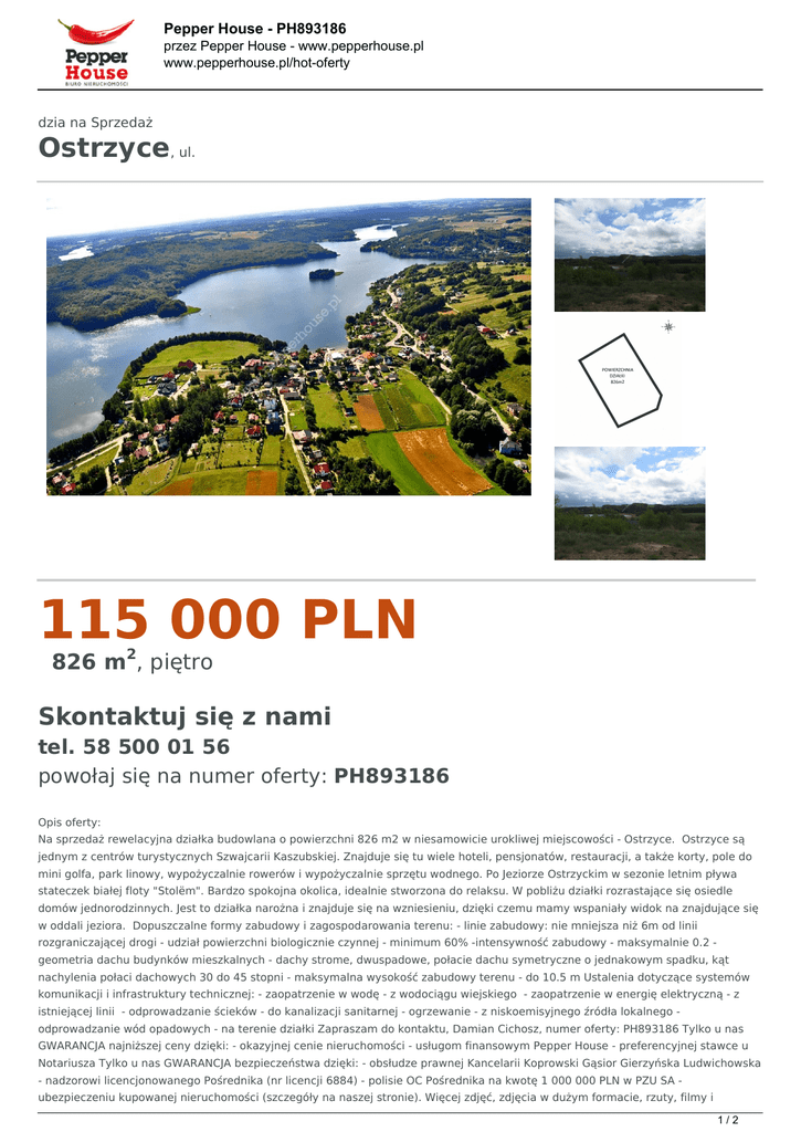 Pepper House - PH893186 przez Pepper House - www.pepperhouse.pl www.pepperhouse.pl/hot-oferty dzia na Sprzedaż Ostrzyce, ul. 115 000 PLN 826 m2, piętro Skontaktuj się z nami tel. 58 500 01 56 powołaj się na numer oferty: PH893186 Opis oferty: Na sprzedaż rewelacyjna działka budowlana o powierzchni 826 m2 w niesamowicie urokliwej miejscowości - Ostrzyce. Ostrzyce są jednym z centrów turystycznych Szwajcarii Kaszubskiej. Znajduje się tu wiele hoteli, pensjonatów, restauracji, a także korty, pole do mini golfa, park linowy, wypożyczalnie rowerów i wypożyczalnie sprzętu wodnego. Po Jeziorze Ostrzyckim w sezonie letnim pływa stateczek białej floty "Stolëm". Bardzo spokojna okolica, idealnie stworzona do relaksu. W pobliżu działki rozrastające się osiedle domów jednorodzinnych. Jest to działka narożna i znajduje się na wzniesieniu, dzięki czemu mamy wspaniały widok na znajdujące się w oddali jeziora. Dopuszczalne formy zabudowy i zagospodarowania terenu: - linie zabudowy: nie mniejsza niż 6m od linii rozgraniczającej drogi - udział powierzchni biologicznie czynnej - minimum 60% -intensywność zabudowy - maksymalnie 0.2 geometria dachu budynków mieszkalnych - dachy strome, dwuspadowe, połacie dachu symetryczne o jednakowym spadku, kąt nachylenia połaci dachowych 30 do 45 stopni - maksymalna wysokość zabudowy terenu - do 10.5 m Ustalenia dotyczące systemów komunikacji i infrastruktury technicznej: - zaopatrzenie w wodę - z wodociągu wiejskiego - zaopatrzenie w energię elektryczną - z istniejącej linii - odprowadzanie ścieków - do kanalizacji sanitarnej - ogrzewanie - z niskoemisyjnego źródła lokalnego odprowadzanie wód opadowych - na terenie działki Zapraszam do kontaktu, Damian Cichosz, numer oferty: PH893186 Tylko u nas GWARANCJA najniższej ceny dzięki: - okazyjnej cenie nieruchomości - usługom finansowym Pepper House - preferencyjnej stawce u Notariusza Tylko u nas GWARANCJA bezpieczeństwa dzięki: - obsłudze prawnej Kancelarii Koprowski Gąsior Gierzyńska Ludwichowska - nadzorowi licencjonowanego Pośrednika (nr licencji 6884) - polisie OC Pośrednika na kwotę 1 000 000 PLN w PZU SA ubezpieczeniu kupowanej nieruchomości (szczegóły na naszej stronie). Więcej zdjęć, zdjęcia w dużym formacie, rzuty, filmy i 1/2 Pepper House - PH893186 przez Pepper House - www.pepperhouse.pl www.pepperhouse.pl/hot-oferty dodatkowe informacje: www.pepperhouse.pl Wejdź już dziś i wyślij zapytanie bezpośrednio do opiekuna oferty. 2/2 Powered by TCPDF (www.tcpdf.org)