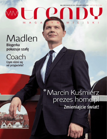 MAJ 2015 NUMER 05 (26) / WYDANIE BEZPŁATNE Madlen Blogerka pokazuje szafę Coach Czym różni się od przyjaciela? Marcin Kuśmierz prezes home.pl Zmieniajcie świat! 28 Madlen Moja szafa i ja 32 / Wnętrza # 24 Moda Rodzinne wartości w nowej odsłonie # 28 Styl życia Madlen - moja szafa i ja # 32 Wnętrza Apartament, który potrafi zaskoczyć # 41 Kulinaria Bardzo czekoladowe ciasto # 48 Styl życia Spis treści 05/ 2015 Sypialnia zamiast porodówki # 06 Newsroom # 50 Kultura Design, moda, wydarzenia, kultura Na co wybrać się w maju # 14 Felieton # 52 Moto Ile wynosi IQ Szczecina? Motoshow z masą atrakcji #16 Temat z okładki Marcin Kuśmierz – o home.pl, branży IT i zmienianiu świata #54 Rozmowa # 22 Showroom # 56 Trendy towarzyskie Maj i zaczarowany ogród Co słychać u Macieja Stolarczyka Kto, z kim, gdzie, kiedy i dlaczego #3 MAGAZYN MIEJSKI | NUMER 05/2015 Jarosław Jaz / Redaktor naczelny Właściwy synonim do: odnieść sukces w Szczecinie? Po prostu: home. pl. Historia firmy, która brzmi jak scenariusz dobrze opowiedzianego, amerykańskiego filmu, zaczyna się w głowach trójki szczecinian pod koniec lat dziewięćdziesiątych. Mimo tego, że łączenie z internetem w Polsce kojarzy się wówczas przede wszystkim z metalicznym dźwiękiem modemu, oni stawiają na biznes związany z usługami w sieci. Dziś home.pl jest największym dostawcą usług internetowych dla małych i średnich przedsiębiorstw w środkowowschodniej Europie i jednym z największych pracodawców z branży IT w regionie. Trójka kolegów ze Szczecina jakiś czas temu spieniężyła swój pomysł funduszowi inwestycyjnemu, który dziś oferuje firmę na sprzedaż. Można się spodziewać, że kolejka zainteresowanych jest długa. Home.pl jest naszym wyjątkowym gościem w obecnym wydaniu MM Trendy. Prezes firmy Marcin Kuśmierz opowiada, jak to jest być liderem w dynamicznie zmieniającym się biznesie IT i nie wypaść z tej gry ani na moment. Mocno stąpa po ziemi i tak samo ocenia rzeczywistość. I choć oceny, dotyczące Szczecina, jakie padają z jego ust brzmią gorzko, z niektórymi trudno się nie zgodzić. Ale nie tylko o sukcesach w branży IT piszemy w tym numerze. Pokazujemy wiosenno-letnią kolekcję szczecińskiej, rodzinnej firmy KMX, która - z sukcesami - od ćwierćwiecza reprezentuje krawieckie wartości. Zawartość swojej szafy odsłania przed nami blogerka Madlen, a szczęśliwe mamy opowiadają o porodach, które odbyły się w domowym zaciszu. Oprócz tego oczywiście masa ciekawostek o ludziach, którzy wiedzą co robić ze swoim życiem, by odnieść sukces. Miłej lektury! Redakcja/ OKŁADKA: Na zdjęciu Marcin Kuśmierz Foto: Piotr Miazga MUA: Agnieszka Szeremeta Redakcja: Nowy Rynek 3, 71-875 Szczecin tel. 91 48 13 341; fax 91 48 13 342 e-mail: [email protected] www.mmszczecin.pl/trendy Redaktor naczelny: Jarosław Jaz Product manager: Ewa Żelazko Promocja i marketing: Marta Rospara Redakcja: Paulina Targaszewska, Bogna Skarul, Małgorzata Klimczak, Tomasz Kuczyński, Agata Maksymiuk, Anna Folkman / Korekta: Beata Pikutowska Dział foto: Sebastian Wołosz, Andrzej Szkocki Skład magazynu: Ewa Kaziszko / MOTIF studio Dystrybucja: Piotr Grudziecki / Druk: COMgraph Sp. z o.o. Dyrektor Zarządzający: Piotr Grabowski Reklama: tel. 500 324 240, fax 91 48 13 360, [email protected] Wydawnictwo: Polska Press Grupa sp. z o.o. ul. Domaniewska 45, 02-672 Warszawa Prezes: Dorota Stanek MAGAZYN MIEJSKI | NUMER 05/2015 #4 Dołącz do nas na www.facebook.com/ MagazynMMTrendy Redakcja nie ponosi odpowiedzialności za treść ogłoszeń. Materiałów, które nie zostały zamówione redakcja nie zwraca. Na podstawie art. 25 ust. 1 pkt 1 b ustawy z dnia 4 lutego 1994 r. o prawie autorskim i prawach pokrewnych Media Regionalne sp. z o.o. zastrzegają, że dalsze rozpowszechnianie materiałów opublikowanych w MM Trendy jest zabronione bez zgody Wydawcy. Newsroom # 200 stron wyjątkowej fotografii W 2013 roku prace szczecinianki Soni Szóstak znalazły się na prestiżowej wystawie „A Glimpse Photo Vouge” w galerii Carla Sozzani, między pracami Anny Lebovitz i Dawida LaChapelle. Współpracowała ze znanymi markami: Top Shop czy H&M. Doczekała się publikacji m.in. w Rolling Stone Magazine i Vain Magazin. Wszytko to zdarzyło się w czasie pięcioletnich studiów w Łódzkiej Szkole Filmowej. Teraz przyszedł czas na podsumowanie, zebrane w wyjątkowej pracy dyplomowej. Sonia Szóstak zdecydowała się wydać książkę. Praca jest wydrukowana w dużym formacie 50x70 cm i ma prawie 200 stron. Fotografka żartuje, że ledwo ją podnosi. Większość stanowią jej autorskie zdjęcia, m.in. portrety czy też akty kobiet. - Proces składania był długi - tłumaczy szczecinianka. - Uparłam się, że zrobię to sama. Bardzo pomógł mi Marcin Dąbrowski z firmy Empresse Art. Sonia myśli o wydaniu niewielkiego nakładu na własną rękę, choć nie wyklucza poszukiwań sponsora. Na razie nie zdradza planów na przyszłość. - Myślę, że to najlepszy czas, by rozwinąć skrzydła i wyjechać z Polski. Niestety, tutaj nie ma rynku na fotografię, którą się zajmuję. Czuję, że czas wyruszyć gdzieś dalej. (am) Foto: Sonia Szóstak MAGAZYN MIEJSKI | NUMER 05/2015 #6 Newsroom Foto: Sebastian Wołosz # Beata Kuracińska i Monika Kreft to szczecinianki, w głowach których aż roi się od pomysłów. Wspólnie uruchomiły firmę OO. To pod jej szyldem zaczęły produkować szczecińskie klocki „City Line Uwaga! Miasto – Szczecin!”. Do wyboru jest kilka zestawów. W skład największego wchodzą m.in. Muzeum Narodowe na Wałach Chrobrego, żurawie portowe, kamienice na Podzamczu, Zamek Książąt Pomorskich i Teatr Letni w Parku Kasprowicza. Można też wybrać jeden z kilku mniejszych, tematycznych zestawów, np. Brama Portowa, Filharmonia czy Port nad Odrą. Można je już kupić w sklepie internetowym www.proojectline.com, a także w Starej Rzeźni i w Trafostacji Sztuki.