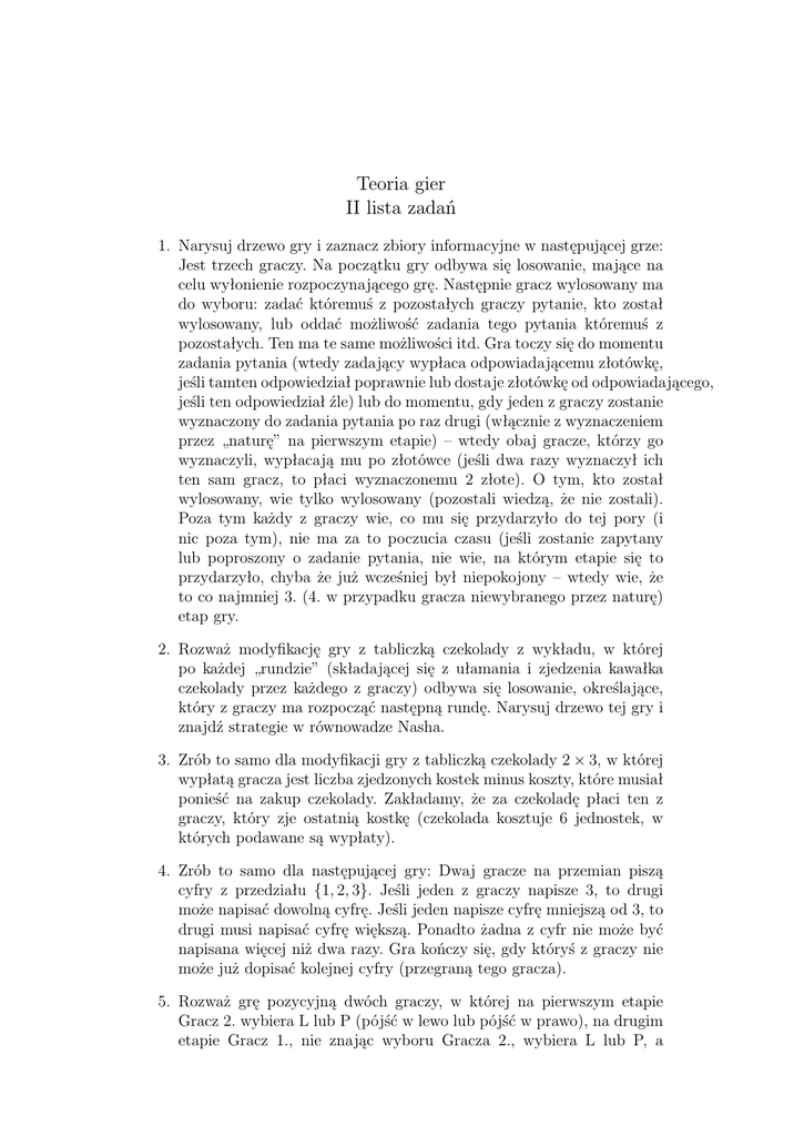 Teoria gier II lista zadań