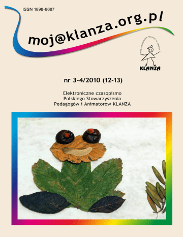 I AN ORÓW IMAT Elektroniczne czasopismo Polskiego Stowarzyszenia Pedagogów i Animatorów KLANZA SZ E ÓW nr 3-4/2010 (12-13) ED E P A GO NI G m oj @ k a z lan p l . g r .o POLSKIE STOW ARZ Y ISSN 1898-8687 www.klanza.org.pl Polskie Stowarzyszenie Pedagogów i Animatorów KLANZA Od redakcji „[email protected]” Kwartalnik elektroniczny Polskiego Stowarzyszenia Pedagogów i Animatorów KLANZA Redakcja: Anna Bieganowska, Magdalena Ciechańska, Anna Gaca, Ewa Gęca, Zdzisław Hofman, Elżbieta Kędzior-Niczyporuk (redaktor naczelna), Ewa Noga, Renata Kownacka, Małgorzata Marcinkowska, Dorota Ozimek, Małgorzata Swędrowska, Grażyna Wiśniewska (korekta), Zofia Zaorska Redakcja techniczna: Elżbieta Kędzior-Niczyporuk [email protected] Bo KLANZA to jest takie miejsce,/które ma znaczeń chyba sto. To słowa z piosenki, która powstała z okazji jubileuszu 20-lecia KLANZY. I tak właśnie jest — związek każdego z nas ze Stowarzyszeniem jest nieco inny. Przybywaliśmy do KLANZY w różnym czasie, pojawialiśmy się na różnych etapach jej rozwoju i na różnych etapach swojego życia. Spotykaliśmy różnych ludzi i działaliśmy w różnych miejscach — wszak KLANZA to duże ogólnopolskie stowarzyszenie. Podejmowaliśmy się też różnych zadań i przyjmowaliśmy różne role, angażując w działania jakąś część siebie. Byli tacy, którzy do KLANZY przychodzili tylko na jakiś czas, by potem pójść własną drogą, niektórych z nich spotkaliśmy znowu z okazji jubileuszu. Inni są w KLANZIE od początku aż do dziś, bo wiedzą i czują, że warto być. A co czują, myśląc KLANZA? Jak pojmują swoją rolę animatora? Jak przebiegała nasza droga ku tożsamości? — o tym m.in. w tym numerze „mojej klanzy”. Elżbieta Kędzior-Niczyporuk, redaktor naczelna SPIS TREŚCI Zdzisław Hofman: Czy szkoła szkodzi. . . . . . . . . . . . . . . . . . . . . . . . . . . . . . . . . . . . . . . 3 Zdzisław Hofman: Wolontariat uczy szczęśliwego życia. . . . . . . . . . . . . . . . . . . . . . . . . . 5 Projekt okładki: Eliza Galej, Paweł Niczyporuk Zofia Zaorska: Myśląc KLANZA. . . . . . . . . . . . . . . . . . . . . . . . . . . . . . . . . . . . . . . . . . . . 6 Ilustracje do tekstów: Agnieszka Szewczyk Anna Bieganowska: Mechanizm, który działa… . . . . . . . . . . . . . . . . . . . . . . . . . . . . . . . 10 Projekt czasopisma: Łukasz Stypuła Elżbieta Kędzior-Niczyporuk: Muzeum jako plac zabawy. . . . . . . . . . . . . . . . . . . . . . . . . 15 Skład i opracowanie graficzne: Studio Graficzne „Niczyporuk” Alicja Gazarkiewicz: Egzamin Pana Kleksa. Scenariusz zabawy z okazji pasowania dzieci na Małgorzata Marcinkowska: Animator, czyli kto? . . . . . . . . . . . . . . . . . . . . . . . . . . . . . . . . 8 Ewa Noga: Energia KLANZY. Przestrzeń ― entuzjazm ― działanie . . . . . . . . . . . . . . . . . . . 13 Olga Niczyporuk: Junibacken. . . . . . . . . . . . . . . . . . . . . . . . . . . . . . . . . . . . . . . . . . . . 19 uczniów klasy „0” . . . . . . . . . . . . . . . . . . . . . . . . . . . . . . . . . . . . . . . . . . . . . . . . 22 Wydawca: Polskie Stowarzyszenie Pedagogów i Animatorów KLANZA Adres redakcji i wydawcy: 20-007 Lublin, ul. Peowiaków 10/9, tel./fax 81 534 65 83 Kontakt z redakcją wyłącznie drogą elektroniczną: [email protected] Małgorzata Swędrowska: Dzień Dobrych Wieści, Maraton Czytania Bajek… czyli w nowym roku szkolnym nowe pomysły na uroczystości i wydarzenia klasowe. . . . . . . . . . . . . 25 Magdalena Ciechańska: Sprawdź swoją wiedzę o Chopinie . . . . . . . . . . . . . . . . . . . . . . . 30 Magdalena Ciechańska: Zimowe gry w karty. . . . . . . . . . . . . . . . . . . . . . . . . . . . . . . . . 34 Magdalena Ciechańska: Jeden element — wiele możliwości. . . . . . . . . . . . . . . . . . . . . . . 36 Ewa Gęca: Pomysł na przebieg Dni Otwartych Szkoły (podstawowej). . . . . . . . . . . . . . . . 39 Ewa i Leszek Gęcowie: Andrzejkowy wieczór wróżb. . . . . . . . . . . . . . . . . . . . . . . . . . . . 41 Michael Thanhoffer, Elisabeth Kolb-Mzalouet: Chaosja i Normalia. Sceniczna, dostarczająca ISSN 1898-8687 Copyright © by PSPiA KLANZA przeżyć historia z tańcem . . . . . . . . . . . . . . . . . . . . . . . . . . . . . . . . . . . . . . . . . . . 43 Karolina Gerwat: Chaosja i Normalia. (Zabawa w oczach dzieci ― relacja z praktyki). . . . . . 45 Grażyna Walczewska-Klimczak: Pedagogika zabawy — droga ku tożsamości . . . . . . . . . . . 47 Czasopismo chronione prawem autorskim. Bogusław Śliwerski: ratujrodzicow.pl. . . . . . . . . . . . . . . . . . . . . . . . . . . . . . . . . . . . . . 49 Redakcja zastrzega sobie prawo dokonywania adiustacji i skrótów. Materiałów niezamówionych nie zwracamy. Grażyna Wiśniewska: Uczenie literatury a zabawa w kontekście psychologii. . . . . . . . . . . 53 Maria Molicka: Dlaczego dzieciom należy czytać baśnie. . . . . . . . . . . . . . . . . . . . . . . . . 50 Dorota Gał: Chopin w Paryżu (tragikomedia w I akcie) . . . . . . . . . . . . . . . . . . . . . . . . . . 56 Katarzyna Mikos, Grażyna Wiśniewska: Iskierka miłości nad przepaścią, czyli jak rozmawiać z uczniami o wartościach. . . . . . . . . . . . . . . . . . . . . . . . . . . . . . . . . . . . . . . . . . . . . . 59 Czasopismo dostępne bezpłatnie na stronie: http:// www.klanza.org.pl w zakładce: Czytelnia czasopisma. Renata Stawinoga, Izabela Chajkaluk: Organizacja przestrzeni na zajęciach warsztatowych. . 64 Alicja Złotnik, Anna Fortuna: Informacja zwrotna w pracy wolontariusza. . . . . . . . . . . . . 67 Anna Gaca: Sztuka współczucia . . . . . . . . . . . . . . . . . . . . . . . . . . . . . . . . . . . . . . . . . 68 Anna Gaca: Odpady. . . . . . . . . . . . . . . . . . . . . . . . . . . . . . . . . . . . . . . . . . . . . . . . . . 68 Muzyka do piosenki pt. „Warto być” została załączona do numeru jako oddzielny plik. „[email protected]” strona 2 nr 3-4/20
