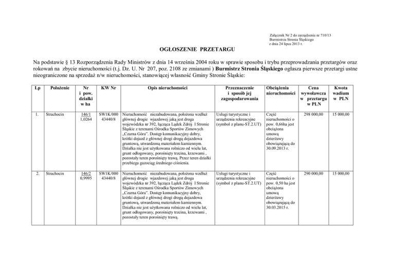 OGŁOSZENIE PRZETARGU Na podstawie § 13 Rozporządzenia