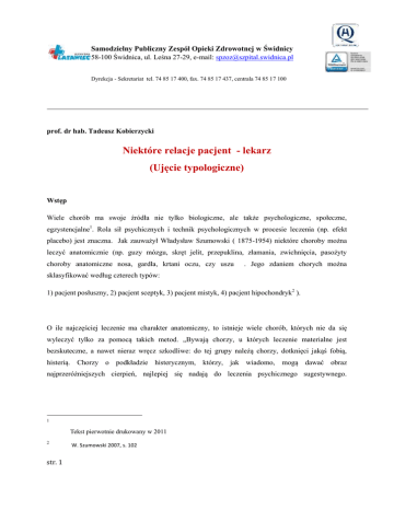 Niektóre relacje pacjent - lekarz - Samodzielny Publiczny Zespół