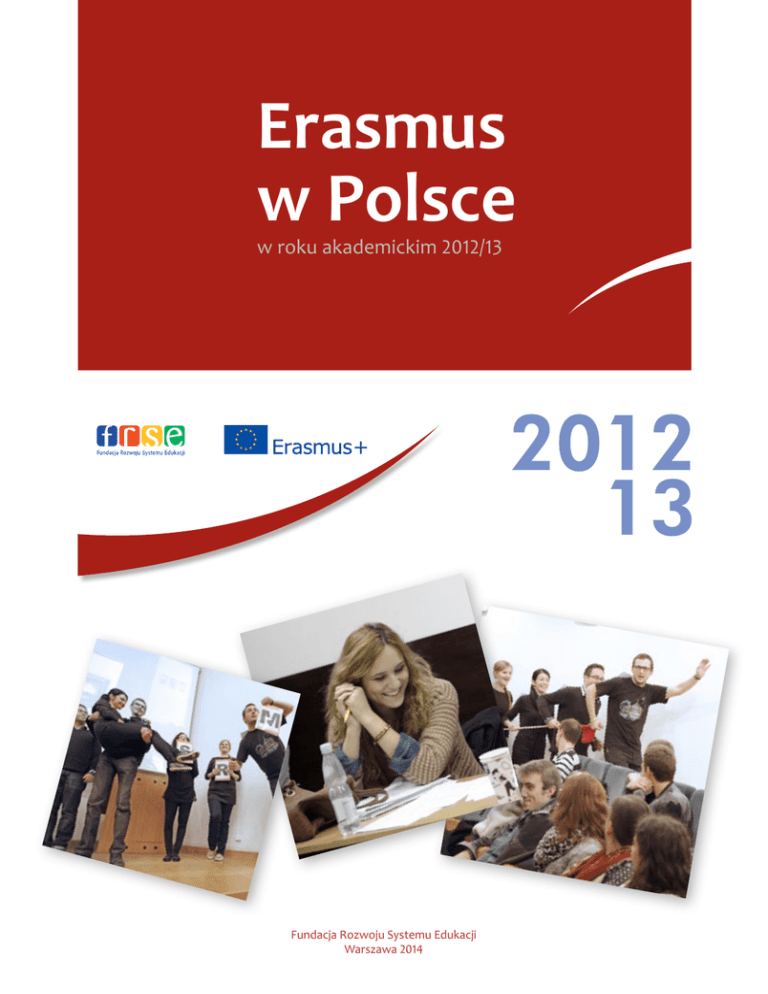 Erasmus w Polsce w roku akademickim 2012/13 Fundacja Rozwoju Systemu Edukacji Warszawa 2014 Erasmus w Polsce w roku akademickim 2012/13 Fundacja Rozwoju Systemu Edukacji Narodowa Agencja Programu Erasmus+ Warszawa 2014 Publikacja sfinansowana ze środków Komisji Europejskiej w ramach programu Erasmus+. Komisja Europejska nie ponosi odpowiedzialności za zawartość merytoryczną publikacji. © Fundacja Rozwoju Systemu Edukacji Warszawa 2014 Teksty: Małgorzata Członkowska-Naumiuk, Renata Smolarczyk Redakcja: Małgorzata Członkowska-Naumiuk Korekta: Agnieszka Pawłowiec Opracowanie graficzne i skład: Eliza Goszczyńska Fotografie na okładce: Danuta Matloch Zdjęcia wykonane podczas kursów języka polskiego (EILC) dla zagranicznych studentów Erasmusa na Uniwersytecie Marii Curie-Skłodowskiej w Lublinie w 2013 r. ISSN: 1734-9427 ISBN: 978-83-64032-46-2 Fundacja Rozwoju Systemu Edukacji Narodowa Agencja Programu Erasmus+ ul. Mokotowska 43 00-551 Warszawa tel.: 22 46 31 321 faks: 22 46 31 021 www.frse.org.pl www.erasmusplus.org.pl Spis treści Wstęp 5 Informacje ogólne i terminologia 7 Erasmus 2012/13 w pigułce 9 Budżet programu w roku 2012/13 10 Działania typu mobilność w Polsce w roku 2012/13 11 Wymiana studentów w Europie 12 Wymiana studentów w Polsce 18 Wyjazdy 18 Wyjazdy na studia 23 Wyjazdy na praktyki 30 Przyjazdy studentów zagranicznych uczelni 36 Przyjazdy na studia 43 Przyjazdy na praktyki 44 Wymiana pracowników uczelni w Europie 45 Wymiana pracowników uczelni w Polsce 48 Wyjazdy 48 Wyjazdy w celu prowadzenia zajęć dydaktycznych 50 Wyjazdy szkoleniowe 55 Przyjazdy pracowników zagranicznych uczelni 59 Intensywne kursy językowe (EILC) 60 Kursy intensywne (IP) 66 3 Wstęp Niniejsza publikacja zawiera zestawienia, wykresy i podsumowania dotyczące działań prowadzonych przez polskie uczelnie w ramach programu Erasmus w roku akademickim 2012/13 – przedostatnim roku realizacji programu „Uczenie się przez całe życie”, którego Erasmus był częścią. Informacje dotyczące udziału Polski zostały ukazane na tle danych pochodzących ze wszystkich krajów uczestniczących w programie. Statystyki sporządzono na podstawie zbiorczych danych opublikowanych przez Komisję Europejską w lipcu 2014 r. oraz sprawozdań końcowych, składanych przez polskie uczelnie do Narodowej Agencji programu „Uczenie się przez całe życie”. W opracowaniu „Erasmus w Polsce” znalazły się ogólne dane statystyczne, natomiast szczegółowe zestawienia prezentujące udział poszczególnych polskich uczelni w Erasmusie zostały zamieszczone w materiałach dostępnych na stronie internetowej www.erasmus.org.pl (w zakładce Statystyki). Publikacja została sfinansowana ze środków rozpoczętego w 2014 r. programu Erasmus+ (http://erasmusplus.org.pl) i opatrzona jego logotypem z uwagi na to, że jej wydanie nastąpiło po zakończeniu realizacji programu „Uczenie się przez całe życie”. Zespół programu Erasmus+ Szkolnictwo wyższe Fundacja Rozwoju Systemu Edukacji 5 Informacje ogólne i terminologia Erasmus w programie „Uczenie się przez całe życie” Erasmus – program Unii Europejskiej, który w latach 2007/08–2013/14 był częścią szerszego programu „Uczenie się przez całe życie” – wspierał międzynarodową współpracę szkół wyższych, umożliwiał wyjazdy studentów za granicę na część studiów i praktyki, ułatwiał mobilność pracowników uczelni, a także stwarzał uczelniom możliwości udziału w międzynarodowych projektach wraz z partnerami zagranicznymi. Studenci byli największą grupą docelową Erasmusa – w latach 1987/88–2012/13 z oferowanych w programie wyjazdów skorzystało ponad 3 mln studentów ze wszystkich uczestniczących w programie krajów. Kraje uczestniczące w programie Erasmus w roku 2012/13: 27 krajów członkowskich UE: Austria, Belgia, Bułgaria, Cypr, Czechy, Dania, Estonia, Finlandia, Francja, Grecja, Hiszpania, Holandia, Irlandia, Luksemburg, Litwa, Łotwa, Malta, Niemcy, Polska, Portugalia, Rumunia, Słowacja, Słowenia, Szwecja, Węgry, Wielka Brytania, Włochy; 3 kraje Europejskiego Obszaru Gospodarczego: Islandia, Liechtenstein, Norwegia; 2 kraje kandydujące – Chorwacja1 i Turcja; Szwajcaria. Możliwości dla poszczególnych grup odbiorców Uczelnie W programie Erasmus mogły uczestniczyć szkoły wyższe, którym Komisja Europejska przyznała Kartę Uczelni Erasmusa (Erasmus University Charter), uprawniającą do ubiegania się o fundusze na dofinansowanie konkretnych działań przewidzianych w programie. Uczelnie mogły prowadzić wymianę studentów i pracowników, koordynować kursy intensywne Erasmusa (Intensive Programmes) lub brać w nich udział jako partnerzy, a także organizować kursy językowe dla studentów zagranicznych (EILC). Miały również możliwość udziału w projektach wielostronnych Erasmusa dotyczących np. opracowywania nowych programów nauczania, rozwoju potencjału badawczego i dydaktycznego, współpracy z przemysłem itp. Ponadto uczelnie mogły brać udział w sieciach akademickich Erasmusa oraz w tzw. działaniach horyzontalnych. Studenci W ramach Erasmusa studenci mogli wyjechać na uczelnię w innym kraju uczestniczącym w programie na część studiów (na okres od 3 miesięcy do jednego roku akademickiego) lub do zagranicznego przedsiębiorstwa na praktykę (3–12 miesięcy). Obowiązywała zasada jednokrotnego wyjazdu – student mógł wyjechać jeden raz w celu studiowania i jeden raz w celu odbycia praktyki, niezależnie od tego, na ilu kierunkach studiuje. Z wyjazdów mogli korzystać studenci, których macierzyste uczelnie uczestniczyły w programie Erasmus. Studenci mogli też brać udział w kursach intensywnych Erasmusa, jeżeli w projektach tego typu uczestniczył ich wydział, a kurs dotyczył ich dziedziny studiów. Studenci wyjeżdżający do krajów, w których używa się języków rzadziej nauczanych, mogli wziąć udział w specjalnych