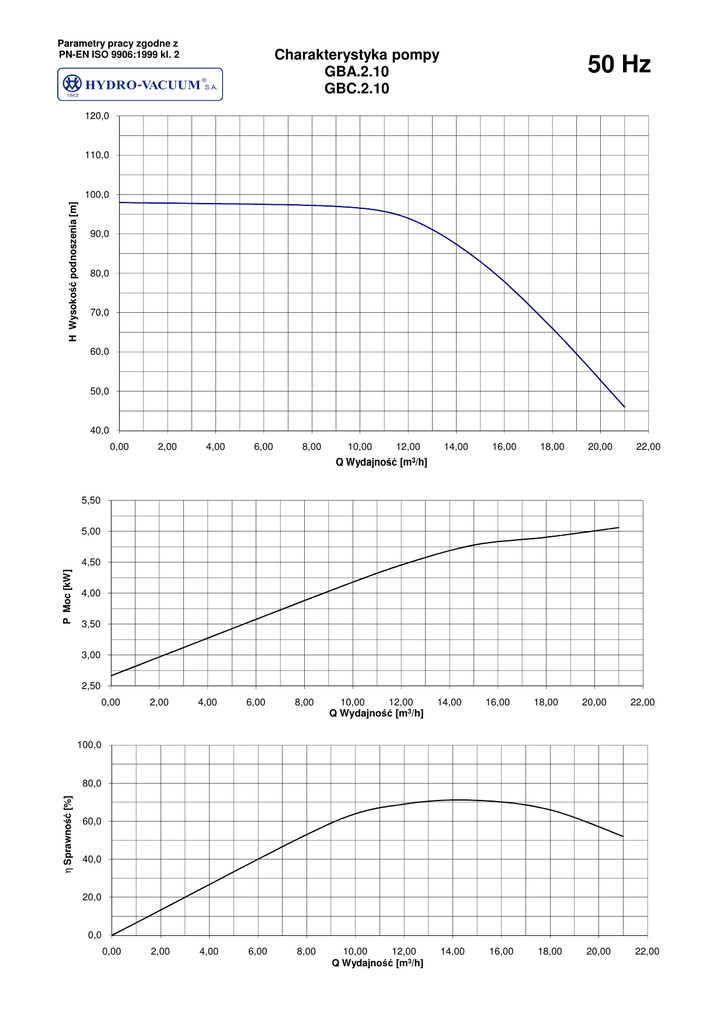 Charakterystyka pompy GBA.2.10 GBC.2.10 - Hydro