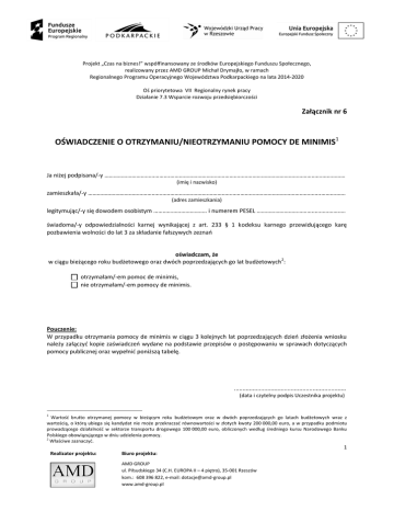oświadczenie o otrzymaniu/nieotrzymaniu pomocy de - AMD