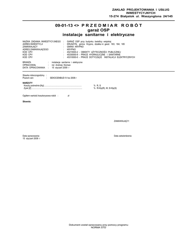 Zał.9-Przedmiar garaż - inst. sanit. i elektr.