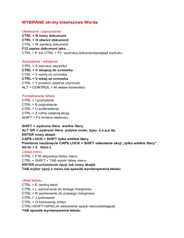 WYBRANE skróty klawiszowe Worda - sp1