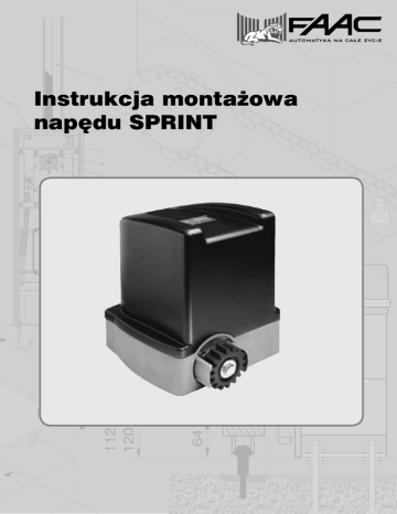 Instrukcja montażowa napędu SPRINT Instrukcja montażowa napędu SPRINT str. 2 NAPĘD SPRINT DEKLARACJA ZGODNOŚCI WE DLA MASZYN (DYREKTYWA 98/37/WE) Producent: FAAC S.p.A Adres: Via Benini, 1-40069 Zola Predosa BOLONIA, Włochy Stwierdza, że: Napęd SPRINT z centralą sterującą SPRINT 05 • został skonstruowany w celu wbudowania do maszyny lub zmontowania z innym urządzeniem w celu utworzenia maszyny zgodnie z postanowieniami Dyrektywy 98/37/WE; • jest zgodny z podstawowymi wymaganiami dotyczącymi bezpieczeństwa zawartymi w następujących dyrektywach EWG: 73/23/EWG wraz z późniejszymi zmianami 93/68/EWG, 89/336/EWG wraz z późniejszymi zmianami 92/31/EWG i 93/68/EWG oraz oświadcza, że zakazane jest oddawanie urządzenia do eksploatacji, aż do momentu gdy maszyna, do której będzie ono wbudowane lub której będzie ono podzespołem, zostanie uznane za zgodne i uzyska deklarację zgodności z postanowieniami Dyrektywy 98/37/WE. Bolonia, 01 Stycznia 2004 Dyrektor Naczelny A. Bassi Instrukcja montażowa napędu SPRINT str. 3 WAŻNE PRZYPOMNIENIE DLA INSTALATORA OGÓLNE PRZEPISY BEZPIECZEŃSTWA 1. UWAGA! Dla zachowania bezpieczeństwa, zaleca się przeczytanie niniejszej instrukcji. Nieprawidłowa instalacja lub użytkowanie może doprowadzić do poważnego zagrożenia zdrowia. 2. Przeczytaj instrukcję uważnie przed zainstalowaniem produktu. 3. Materiał, z którego wykonano opakowanie (plastik, polistyren, itd.) stanowi potencjalne niebezpieczeństwo i musi pozostawać poza zasięgiem dzieci. 4. Zachowaj instrukcje na przyszłość jako źródło informacji. 5. Niniejszy produkt został zaprojektowany i wyprodukowany wyłącznie do zastosowania wskazanego w niniejszej instrukcji. Jakiekolwiek inne zastosowanie nie wymienione w niniejszej instrukcji wpłynie na niezawodność produktu i / lub może być źródłem niebezpieczeństwa. 6. Firma FAAC nie może być pociągnięta do odpowiedzialności za jakiekolwiek uszkodzenie spowodowane przez niewłaściwe użycie produktu lub użycie inne niż to, do którego produkt jest przeznaczony. 7. Nie instaluj urządzenia w strefie narażonej na niebezpieczeństwo wybuchu: obecność łatwopalnych gazów lub oparów stanowi poważne zagrożenie. 8. Elementy konstrukcji mechanicznej muszą być zgodne ze standardami EN 12604 i EN 12605. Kraje nie należące do Unii Europejskiej będą przestrzegały powyższych przepisów poza ich krajowymi unormowaniami w celu zapewnienia maksymalnego bezpieczeństwa. 9. FAAC nie może być pociągnięta do odpowiedzialności za nieprzestrzeganie standardów technicznych przy budowaniu bram i drzwi, ani za jakiekolwiek deformacje bram, które mogą wystąpić w trakcie użytkowania. 10. Instalacja musi być zgodna ze standardami EN 12453 i EN 12445. Kraje nie należące do Unii Europejskiej muszą przestrzegać powyższych przepisów poza ich krajowymi unormowaniami w celu zapewnienia maksymalnego bezpieczeństwa. 11. Przed wykonywaniem jakichkolwiek prac, odłącz zasilanie. 12. Zasilanie urządzenia poprzez wyłącznik z odległością rozwarcia styków wynoszącą 3 mm lub więcej. Instalacja elektryczna musi być zabezpieczona 6A bezpiecznikiem. 13. Upewnij się, że przeciwprądowy wyłącznik różnicowy o progu wyłączania 0,03 A znajduje się w systemie elektrycznym. 14. Upewnij się, że instalacja uziemiająca jest w idealnym stanie i podłącz ją do części metalowych. 15. Napęd wyposażony jest w przeciwzgnieceniowe urządzenie zabezpieczające, które jest urządzeniem kontrolującym siłę docisku do przeszkody. 16. Wskazane jest abyś używał lampy ostrzegawczej (FAACLIGHT) przy instalacji każdego systemy automatycznego FAAC. 17. Firma FAAC nie może być pociągnięta do odpowiedzialności odnośnie bezpieczeństwa i poprawnego funkcjonowania urządzenia w przypadku, gdy użyte zostały części inne niż oryginalne części FAAC. 18. Używaj tylko oryginalnych części zamiennych FAAC. 19. Nie dokonuj żadnych modyfikacji elementów urządzenia. 20. Instalator musi dostarczyć wszystkie informacje dotyczące manualnej obsługi systemu w przypadku awarii oraz przekazać użytkownikowi instrukcję obsługi dołączoną do produktu. 21. Nie pozwalaj przebywać dzieciom w pobliżu urządzenia w trakcie jego działania. 22. Trzymaj urządzenia radiowe zdalnego sterowania i wszelkie inne urządzenia sterujące poza zasięgiem dzieci, aby zapobiec przypadkowemu uruchomieniu. 23. Przejście pod bramą/drzwiami jest dozwolone tylko wtedy, gdy urządzenie operujące nimi jest nieczynne. 24. Użytkownik nie może próbować samodzielnie naprawiać lub regulować urządzenie. Prace te muszą być prowadzone tylko przez wykwalifikowany personel. 25. Co najmniej, co 6 miesięcy sprawdzaj poprawność działania urządzenia (wliczając zabezpieczenia). 26. To, czego wyraźnie nie określono w niniejszych instrukcjach nie jest dozwolone. Instrukcja montażowa napędu SPRINT 1. Opis i charakterystyka techniczna Napęd SPRINT stosowany jest do bram przesuwnych do użytku przydomowego. Jest to napęd elektromechaniczny, który w odpowiednim momencie, poprzez sprzęglone koło zębate, transmituje ruch przesuwu do zębatki zainstalowanej na bramie. Do napędu nie trzeba stosować dodatkowych zamków, gdyż posiada on specjalną mechaniczną blokadę bezpieczeństwa. Wygodny system odblokowania sprawia, że w przypadku awarii i nieprawidłowego funkcjonowania urządzenia możliwa jest ręczna obsługa bramy. Napęd SPRINT nie posiada sprzęgła mechanicznego, tak więc wymaga zastosowania urządzenia sterującego ze sprzęgłem elektronicznym. str. 4 Napędy SPRINT są już wyposażone w elektroniczną aparaturę sterującą. Charakterystyka techniczna napędu Zasilanie Moc Pobór prądu Ilość obrotów silnika elektrycznego Kondensator Koło zębate Zębatka 230Vac ~ 50Hz 350W 1.5A 1400 obr/min 10μF/400V Z16 Modół 4 Max. siła pary elementów współdziałających 18Nm Max. siła ciągu 