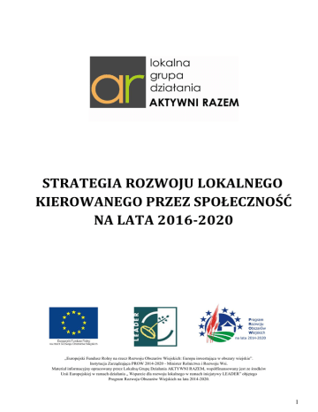 STRATEGIA ROZWOJU LOKALNEGO KIEROWANEGO PRZEZ SPOŁECZNOŚĆ NA LATA 2016-2020 „Europejski Fundusz Rolny na rzecz Rozwoju Obszarów Wiejskich: Europa inwestująca w obszary wiejskie”. Instytucja Zarządzająca PROW 2014-2020 - Minister Rolnictwa i Rozwoju Wsi. Materiał informacyjny opracowany przez Lokalną Grupę Działania AKTYWNI RAZEM, współfinansowany jest ze środków Unii Europejskiej w ramach działania „ Wsparcie dla rozwoju lokalnego w ramach inicjatywy LEADER” objętego Program Rozwoju Obszarów Wiejskich na lata 2014-2020. 1 OPIS PRZEDSIĘWZIĘĆ LOKALNEJ STRATEGI ROZWOJU STOWARZYSZENIA LOKALNA GRUPA DZIAŁANIA AKTYWNI RAZEM Przedsięwzięcie 1.1.1: AKTYWNI RAZEM • Cel ogólny 1: Rozwój kapitału społecznego obszaru LGD AR • Cel szczegółowy 1.1: Integracja i aktywizacja społeczna mieszkańców obszaru Sposób realizacji: GRANTY; Grupy docelowe: Młode NGO, bezrobotni, niepełnosprawni, dzieci i młodzież, kobiety, grupa 50+; Działania:  Kształcenie lokalnych liderów, kształcenie animatorów społecznych (lata 2016-2018);  Rozwój oferty i infrastruktury rekreacyjnej (lata 2016-2018 );  Organizacja tematycznych wydarzeń integracyjnych z aktywnym udziałem mieszkańców oraz wykorzystaniem animatorów (lata 2016-2018 );  Realizacja projektów współpracy podmiotów w obrębie sektorów i między nimi, w tym JST i NGO (lata 20192021 );  Realizacja projektów międzypokoleniowych (lata 2022-2023 ). Wskaźnik realizacji Przedsięwzięcia 1.1.1: 68 zrealizowanych działań na rzecz integracji i aktywizacji mieszkańców. Przedsięwzięcie 1.2.1: MĄDRY POLAK PRZED SZKODĄ • Celu ogólnego 1: Rozwój kapitału społecznego obszaru LGD AR • Celu szczegółowego 1.2: Dyfuzja innowacji społecznych Sposób realizacji: GRANTY Grupy docelowe: Bezrobotni, niepełnosprawni, dzieci i młodzież, kobiety, grupa 50+; Działania:  Organizacja forów tematycznych dot. innowacji społecznych; szkolenia tematyczne dot. innowacji społecznych, tematyczne wizyty studyjne (lata 2016-2018 );  Lokalne projekty współpracy dot. problemów społecznych, innowacyjne projekty pilotażowe dot. problemów społecznych (lata 2019-2021); Wskaźniki realizacji Przedsięwzięcia 1.2.1: • 20 zrealizowanych działań na rzecz dyfuzji innowacji społecznych. Przedsięwzięcie 1.3.1: TACY SAMI • Celu ogólnego 1: Rozwój kapitału społecznego obszaru LGD AR • Cel szczegółowy 1.3: Włączenie społeczne grup defaworyzowanych Sposób realizacji: GRANTY Grupy docelowe: Bezrobotni, niepełnosprawni, dzieci i młodzież, absolwenci, kobiety, grupa 50+ i 60+, dzieci i młodzież z rodzin ubogich; 2 Działania:  Promocja i rozwój wolontariatu, tworzenie grup samopomocy, tworzenia grup wsparcia, wsparcie psychologiczne i pedagogiczne grup defaworyzowanych, działania edukacyjne dot. zapobiegania i rozwiązywania problemów społecz0nych (lata 2019-2021);  Promocja młodzieży i grupy 50+ w środowisku pracodawców (lata 2022-2023);  Integracja osób niepełnosprawnych ze społecznością lokalną, usuwanie barier architektonicznych (lata 20162018 );  Działania edukacyjne i rozwojowe dla dzieci i młodzieży, w tym z grup defaworyzowanych (lata 2016-2018 ); Wskaźnik realizacji Przedsięwzięcia 1.3.1: • 38 zrealizowanych działań na rzecz włączenia społecznego grup defaworyzowanych. Przedsięwzięcie 1.4.1: NIE ŚWIĘCI GARNKI LEPIĄ • Celu ogólnego 1: Rozwój kapitału społecznego obszaru LGD AR • Cel szczegółowy 1.4: Rozwój kompetencji kluczowych, społecznych, obywatelskich i zawodowych mieszkańców Sposób realizacji: GRANTY Grupy docelowe: Młodzież, bezrobotni; Działania:  Działania rozwijające kompetencje kluczowe, społeczne i obywatelskie mieszkańców (lata 2016-2021 );  Działania rozwijające kompetencje zawodowe mieszkańców (lata 2019-2023 ); Wskaźnik realizacji Przedsięwzięcia 1.4.1: • 40 zrealizowanych działań na rzecz rozwoju kompetencji. Przedsięwzięcie 1.5.1: DZIEDZICTWO DLA ROZWOJU • Celu ogólnego 1: Rozwój kapitału społecznego obszaru LGD AR • Cel szczegółowy 1.5: Zachowanie i rozwój dziedzictwa kulturowego, rozwój infrastruktury kulturalnej Sposób realizacji: GRANTY, KONKURS Grupy docelowe: Dzieci i młodzież, kobiety, grupa 50+ i 60+, bezrobotni, absolwenci; Działania:  Archiwizacja społeczna, tworzenie i rozwój gminnych izb pamięci (lata 2019-2021 );  Rozwój imprez i innych instrumentów promujących dziedzictwo kulturowe obszaru LGD (lata 2016-2021 );  Rozwój ogólnodostępnej infrastruktury kulturalnej (lata 2016-2018 );  Szkolenie i zatrudnianie animatorów kultury, tworzenie i realizacja programów kulturalnych dla świetlic (lata 2019-2023 ); Wskaźnik realizacji Przedsięwzięcia 1.5.1: • 41 zrealizowanych działań na rzecz zachowania i rozwoju dziedzictwa kulturowego, rozwoju infrastruktury kulturalnej. Przedsięwzięcie 2.1.1: KOWALE SWEGO SZCZĘŚCIA • Cel ogólny 2: Rozwój przedsiębiorczości i tworzenie miejsc pracy • Cel szczegółowy 2.1: Realizacja inwestycji tworzących miejsca pracy Sposób realizacji: KONKURS 3 Grupy docelowe: Przedsiębiorcy, bezrobotni zwłaszcza młodzież i 50+; Działania:  Tworzenie nowych przedsiębiorstw (lata 2016-2018 );  Rozwijanie działalności gospodarczej (lata 2016-2018 ); Wskaźnik realizacji Przedsięwzięcia 2.1.1: • 16 zrealizowanych działań na rzecz rozwoju przedsiębiorczości i tworzenia miejsc pracy . Przedsięwzięcie 2.2.1: EKONOMIA Z LUDZKĄ TWARZĄ • Cel ogólny 2: Rozwój przedsiębiorczości i tworzenie miejsc pracy • Cel szczegółowy 2.2: Promocja ekonomii społecznej Sposób realizacji: GRANTY , KONKURS Grupy docelowe: Bezrobotni, niepełnosprawni, absolwenci, kobiety, grupa 50+; Działania:  Opracowanie i dystrybucja informacji, szkolenia i wizyty studyjne (lata 2016-2021 );  Tworzenie nowych przedsiębiorstw ekonomii społecznej (PES) (lata 2019-2021 );  Rozwijanie przedsiębiorstw ekonomii społecznej (PES) (lata 2019-2021