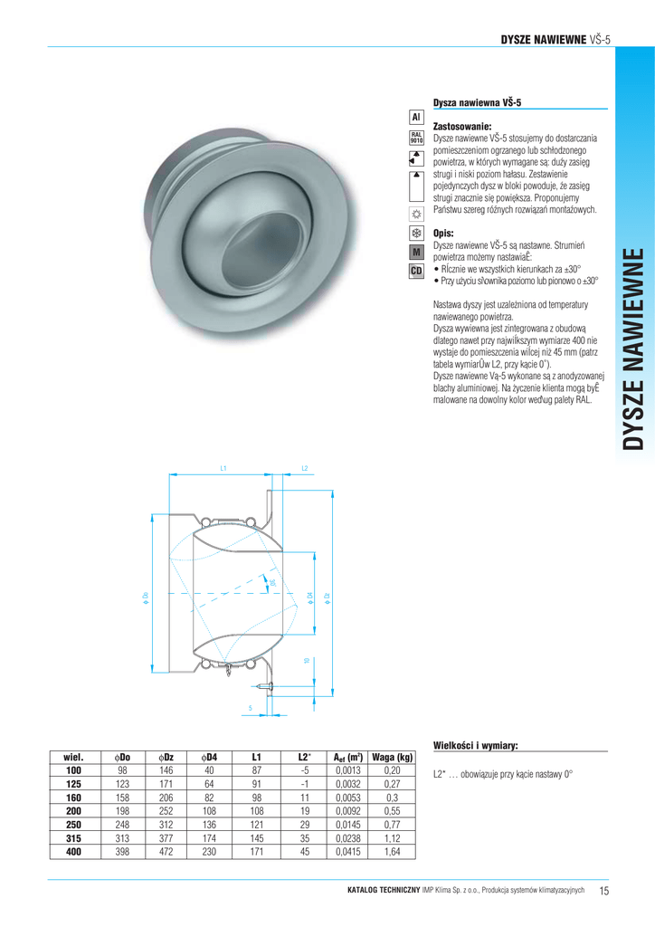 DYSZE NAWIEWNE V[-5 DANE TECHNICZNE