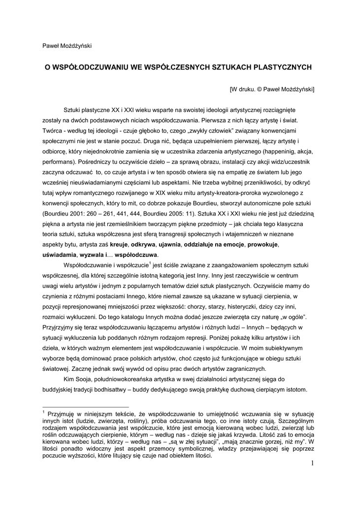 1 o współodczuwaniu we współczesnych sztukach plastycznych