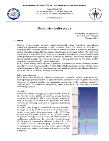 Balon stratosferyczny - Koło Naukowe Fizyków