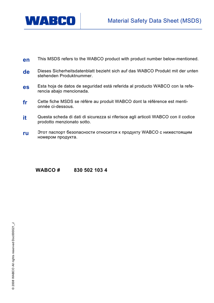 Material Safety Data Sheet (MSDS) fr it - inform.wabco