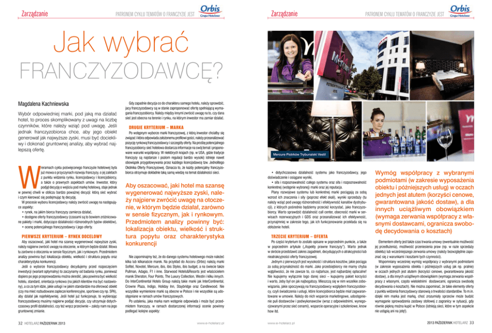 Zarządzanie Zarządzanie patronem cyklu tematów o franczyzie jest patronem cyklu tematów o franczyzie jest Jak wybrać franczyzodawcę? Magdalena Kachniewska Wybór odpowiedniej marki, pod jaką ma działać hotel, to proces skomplikowany z uwagi na liczbę czynników, które należy wziąć pod uwagę. Jeśli jednak franczyzobiorca chce, aby jego obiekt generował jak najwyższe zyski, musi być dociekliwy i dokonać gruntownej analizy, aby wybrać najlepszą ofertę. W reramach cyklu poświęconego franczyzie hotelowej była już mowa o przyczynach rozwoju franczyzy, o jej zaletach z punktu widzenia rynku, licencjodawcy i licencjobiorcy, a także o prawnych aspektach umów. Inwestor, który podjął decyzję o wejściu pod markę hotelową, staje jednak w pewnej chwili w obliczu bardzo poważnej decyzji: którą sieć wybrać i czym kierować się podejmując tę decyzję. W procesie wyboru licencjodawcy należy zwrócić uwagę na następujące aspekty: • rynek, na jakim biorca franczyzy zamierza działać, • dostępne oferty franczyzodawcy (czasami są to bowiem zróżnicowane pakiety i marki, dotyczące działalności różnorodnych typów obiektów), • ocenę potencjalnego franczyzodawcy i jego oferty. Pierwsze kryterium – rynek docelowy Aby oszacować, jaki hotel ma szansę wygenerować najwyższe zyski, należy najpierw zwrócić uwagę na otoczenie, w którym będzie działał. Mowa tu zarówno o otoczeniu w sensie fizycznym, jak i rynkowym. Przedmiotem analizy powinna być lokalizacja obiektu, wielkość i struktura popytu oraz charakterystyka konkurencji. Jeśli o wyborze franczyzodawcy decydujemy przed rozpoczęciem inwestycji (wariant optymalny) to zaczynamy od badania rynku, ponieważ dopiero po jego przeprowadzeniu można określić, jaka powinna być wielkość hotelu, standard, orientacja rynkowa (na jakich klientów ma być nastawiony), a co za tym idzie, jakie usługi i w jakim standardzie ma oferować obiekt (czy ma mieć rozbudowane zaplecze konferencyjne, sportowe czy np. SPA), aby działał jak najefektywniej. Jeśli hotel już funkcjonuje, to wybierając franczyzodawcę musimy najpierw podjąć decyzje, czy utrzymuje dotychczasowy profil działalności, czy też wręcz przeciwnie – zależy nam na jego gruntownej zmianie. 32 HOTELARZ październik 2013 Gdy zapadnie decyzja co do charakteru samego hotelu, należy sprawdzić, jacy franczyzodawcy są w stanie zaproponować ofertę spełniającą wymagania franczyzobiorcy. Należy między innymi zwrócić uwagę na to, czy dana sieć jest obecna na terenie i rynku, na którym inwestor ma zamiar działać. Drugie kryterium – marka Po wstępnym wyborze marki franczyzowej, z którą inwestor chciałby się związać i która odpowiada założonemu profilowi gości, należy przeanalizować pozycję rynkową franczyzodawcy i szczegóły oferty. Na prośbę potencjalnego franczyzobiorcy sieć hotelowa dostarcza informacje na swój temat i proponowane warunki współpracy. W niektórych krajach (np. w USA, gdzie tradycje franczyzy są najstarsze i poziom regulacji bardzo wysoki) istnieje nawet obowiązek przygotowywania przez każdego licencjodawcę tzw. Jednolitego Okólnika Oferty Franczyzowej. Oznacza to, że każdy potencjalny franczyzobiorca otrzymuje dokładnie taką samą wiedzę na temat działalności sieci. Aby oszacować, jaki hotel ma szansę wygenerować najwyższe zyski, należy najpierw zwrócić uwagę na otoczenie, w którym będzie działał, zarówno w sensie fizycznym, jak i rynkowym. Przedmiotem analizy powinny być: lokalizacja obiektu, wielkość i struktura popytu oraz charakterystyka konkurencji Nie zapominajmy też, że do danego systemu hotelowego może należeć kilka lub kilkanaście marek. Na przykład do Accoru (Orbis) należą marki Sofitel, Novotel, Mercure, ibis, ibis Styles, ibis budget, a na świecie także Pullman, Adagio, F1 i inne. Starwood Hotels&Resorts jest właścicielem marek Sheraton, Four Points, The Luxury Collection, Westin i kilku innych. Do InterContinental Hotels Group należą takie marki jak InterContinental, Crowne Plaza, Indigo, Holiday Inn, Staybridge oraz Candlewood. Nie wszystkie wymienione marki są obecne w Polsce i nie wszystkie są udostępniane w ramach umów franczyzowych. Po ustaleniu, jaka marka nam wstępnie odpowiada i może być przedmiotem franczyzy, w ramach dostarczonej informacji ocenie powinny podlegać kolejne aspekty: www.e-hotelarz.pl Mercure Piotrków Trybunalski Vestil • dotychczasowa działalność systemu jako franczyzodawcy, jego doświadczenie i osiągane wyniki, • siła i rozpoznawalność całego systemu oraz siła i rozpoznawalność konkretnej (wstępnie wybranej) marki oraz jej reputacja. Plany rozwojowe systemu lub konkretnej marki pociągają za sobą wzrost ich znaczenia i siły (poprzez efekt skali), wyniki sprzedaży (tu należy wziąć pod uwagę różnorodność i efektywność kanałów dystrybucji), z których pośrednio będziemy przecież korzystać, jako franczyzobiorcy. Warto sprawdzić działalność call center, obecność marki w serwisach rezerwacyjnych i GDS oraz przeanalizować ich efektywność, przynajmniej w zakresie tego, jak ich funkcjonowanie przekłada się na obłożenie hoteli. Trzecie kryterium – oferta Po części kryterium to zostało opisane w poprzednim punkcie, a także w poprzednim artykule („Aspekty prawne franczyzy”). Warto jednak w skrócie przedstawić zakres zagadnień, decydujących o atrakcyjności lub nieatrakcyjności oferty franczyzowej. Jednym z pierwszych jest wysokość i struktura kosztów, jakie pociąga za sobą przynależność do marki. Jako przedsiębiorcy nie mamy chyba wątpliwości, że nie zawsze to, co najtańsze, jest najbardziej opłacalne! Nie kupujemy wyłącznie logo danej sieci – kupujemy pakiet korzyści i warto, żeby był on jak najbogatszy. Mieszczą się w nim wszelkie zobowiązania, jakie spoczywają na franczyzodawcy względem franczyzobiorcy,