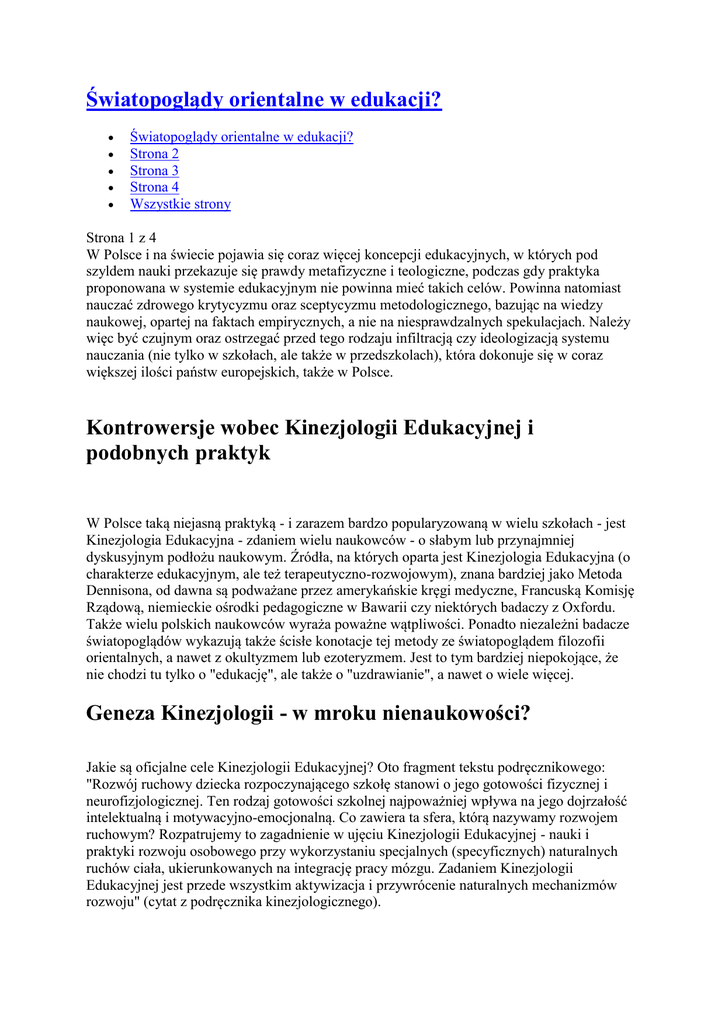dyskusyjnym podłożu naukowym. Źródła, na których oparta jest Kinezjologia Edukacyjna (o