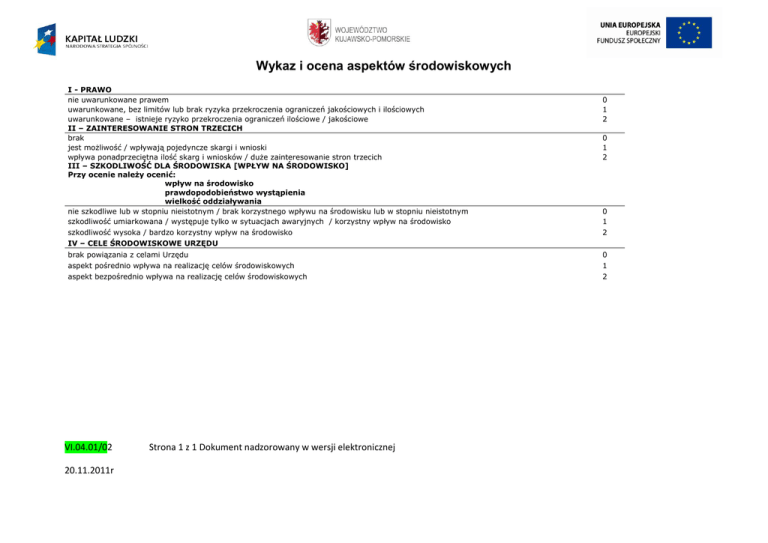 Wykaz i ocena aspektów środowiskowych