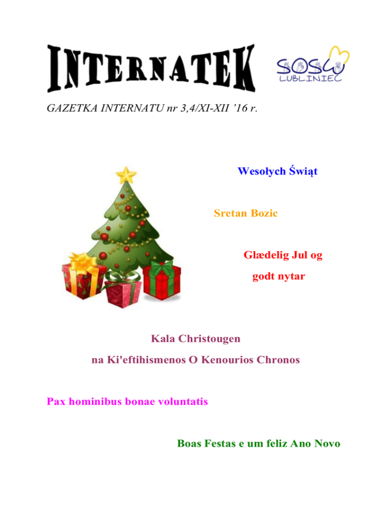 GAZETKA INTERNATU nr 3,4/XI-XII `16 r. Wesołych Świąt Sretan
