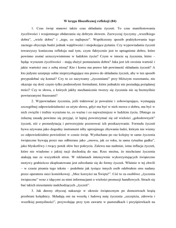W kręgu filozoficznej refleksji (84) 1. Czas świąt stanowi także czas