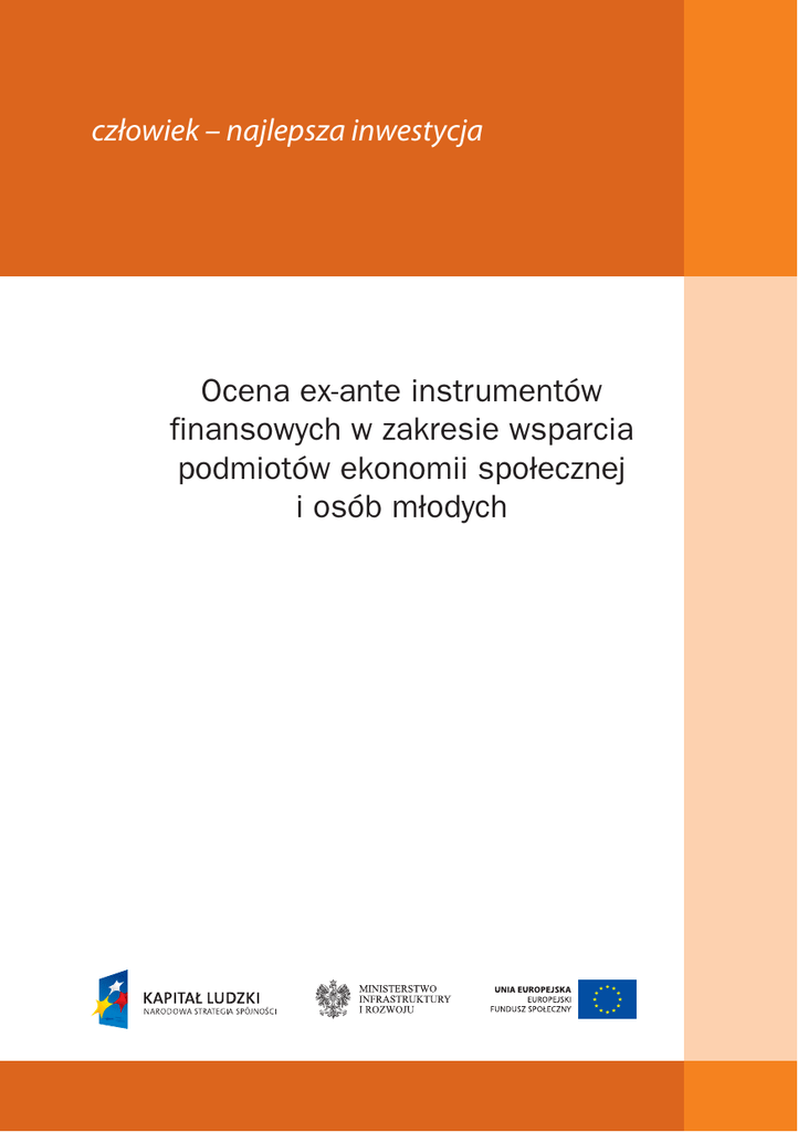 człowiek – najlepsza inwestycja Ocena ex-ante instrumentów finansowych w zakresie wsparcia podmiotów ekonomii społecznej i osób młodych OCENA EX-ANTE INSTRUMENTÓW FINANSOWYCH W ZAKRESIE WSPARCIA PODMIOTÓW EKONOMII SPOŁECZNEJ I OSÓB MŁODYCH CEL BADANIA CEL BADANIA W okresie listopad 2013 – luty 2014 przeprowadzone zostało badanie Ocena ex-ante instrumentów finansowych w zakresie wsparcia podmiotów ekonomii społecznej i osób młodych, którego celem była ocena zapotrzebowania na instrumenty zwrotne w odniesieniu do przedsiębiorstw społecznych i osób młodych planujących rozpoczęcie własnej działalności gospodarczej oraz sformułowanie propozycji instrumentów zwrotnych możliwych do wdrażania w ramach Programu Operacyjnego Wiedza Edukacja Rozwój 2014–2020. Przedmiotem badania była także ocena wartości dodanej instrumentów finansowych, współfinansowanych ze środków Europejskiego Funduszu Społecznego oraz ocena ich spójności z innymi formami publicznego wsparcia w obszarze ekonomii społecznej, oraz wsparcia rozpoczynania działalności gospodarczej przez osoby młode. Natomiast w zakresie oceny zapotrzebowania na tzw. instrumenty inżynierii finansowej, znalazło się oszacowanie wielkości luki finansowej, wyrażonej poprzez wartość niezaspokojonych potrzeb rozwojowych czy inwestycyjnych wskazanych powyżej podmiotów. 2 METODOLOGIA Dla zapewnienia trafności i rzetelności badania analiza oparta została na różnorodnych źródłach danych, w tym: • analizie publicznych danych statystycznych (GUS:SOF-1, BAEL), • wywiadach bezpośrednich, m.in. z przedstawicielami instytucji finansowych, ośrodków wsparcia ekonomii społecznej, • wywiadach grupowych, m.in. z przedstawicielami przedsiębiorstw społecznych oraz instytucji oferujących wsparcie osobom młodym, • badaniu ankietowym potencjalnych beneficjentów wsparcia, • przeglądzie literatury polskiej i zagranicznej. Do szacunków luki finansowej wykorzystane zostały dane otrzymane w wyniku badań ankietowych, wraz z wykorzystaniem danych BAEL, a także analizy dokumentów, raportów ze statystyki publicznej oraz wnioski z analiz jakościowych. Przedsiębiorstwa społeczne zostały zdefiniowane jako organizacje pozarządowe prowadzące działalność gospodarczą lub odpłatną statutową o przychodach co najmniej 10 tys. zł, spółdzielnie socjalne, spółdzielnie pracy i niewidomych oraz spółki non-profit. Blisko 58% przedsiębiorstw społecznych poniosło w 2013 r. wydatki rozwojowe. Zaledwie 10% sfinansowało je za pomocą kredytu lub pożyczki. Jedną z poważniejszych barier dla rozwoju tych przedsiębiorstw jest dostęp do kapitału. Brak środków finansowych w minionym roku uniemożliwił realizację zaplanowanych działań rozwojowych 46% przedsiębiorstw społecznych. Średnia wartość niezrealizowanych wydatków wynosi 108 tys. zł. DZIAŁALNOŚĆ PRZEDSIĘBIORSTW SPOŁECZNYCH DZIAŁALNOŚĆ PRZEDSIĘBIORSTW SPOŁECZNYCH Przyczyny niezrealizowania wydatków rozwojowych Przyczyna Organizacja pozarządowa Spółdzielnia socjalna Brak własnych pieniędzy na inwestycje 36% 31% Brak dostępu do dotacji 26% 23% Brak dostępu do kredytu lub pożyczki 11% 14% Brak dostępu do poręczenia 10% 10% 6% 8% 11% 13% Brak wiedzy o tym, jak zaplanować zwrot z inwestycji Niestabilna sytuacja podmiotu Źródło: Obliczenia własne. Możliwość pozyskania dotacji oraz obawa przed ryzykiem związanym z kredytem zmniejszają zainteresowanie finansowaniem zwrotnym. Dla tych, którzy chcą skorzystać z kredytów, problemem jest spełnienie wymagań stawianych przez instytucje finansowe. Istniejąca oferta instytucji finansowych jest niedostosowana do potrzeb podmiotów ekonomii społecznej. Wynika to z niewielkiej liczby przedsiębiorstw społecznych oraz ich małej wiarygodności dla tych instytucji. 3 DZIAŁALNOŚĆ GOSPODARCZA OSÓB MŁODYCH W POLSCE Wykres 1. Powody, dla których PS nie starały się o pożyczkę lub kredyt 71% Wolimy korzystać z dotacji 65% Obawiamy się ryzyka 49% Nie mamy wymaganych zabezpieczeń 43% Mamy wystarczające przychody własne 36% Nie spełnilibyśmy kryteriów 34% Nie planowaliśmy inwestycji 32% Formalności są zbyt uciążliwe 22% Nie znamy oferty 20% Inne? Wymagałoby to od nas zbyt dużo pracy 17% 0% 10% 20% 30% 40% 50% 60% 70% 80% Źródło: Obliczenia własne na podstawie badań CATI (n = 751). 4 Luka niezrealizowanych wydatków rozwojowych organizacji pozarządowych wyniosła w 2013 roku 655 mln zł. Doświadczyło jej w 2013 roku 2,5 tys. NGO. Natomiast luka finansowa rozumiana jako brak uzyskania kredytu lub pożyczki zarówno przez organizacje pozarządowe, jak i przez spółdzielnie socjalne, wynosiła w 2013 roku 51,3 mln zł. DZIAŁALNOŚĆ GOSPODARCZA OSÓB MŁODYCH W POLSCE Relatywnie duży, na tle krajów UE, jest odsetek osób w wieku 15–24 lat prowadzących działalność gospodarczą (PL 5,5%, UE 4,4%). Udział osób samozatrudnionych wzrasta wraz z wiekiem (niemal 10% osób w wieku 25–30 lat). Główną barierą powstrzymującą młodych przed rozpoczęciem działalności gospodarczej jest brak wystarczającego kapitału. O powodzeniu w utrzymaniu firmy, decyduje nie tylko posiadanie kapitału, ale odpowiednie przygotowanie do prowadzenia działalności, którego niestety młodym ludziom często brakuje. brak identyfikacji nisz brak wykwalifikowanych pracowników ZUS i podatki lokalizacja wysokie koszty brak informacji o instytucji wysoka biurokracja przepisy brak wiedzy pozyskanie kredytu/pożyczki niskie dochody wysoka konkurencja problem z rejestracją brak pieniędzy brak dotacji obecni mały rynek zbytu pozyskanie klientów byli planujący Środki na rozpoczęcie działalności to głównie własne oszczędności, uzupełniane wsparciem finansowym rodziny. Finansowanie zwrotne (głównie rynkowe) odpowiada za blisko ¼ środków. Wykres 3. Źródła finansowania rozpoczęcia działalności gospodarczej dotacje rodzina 1
