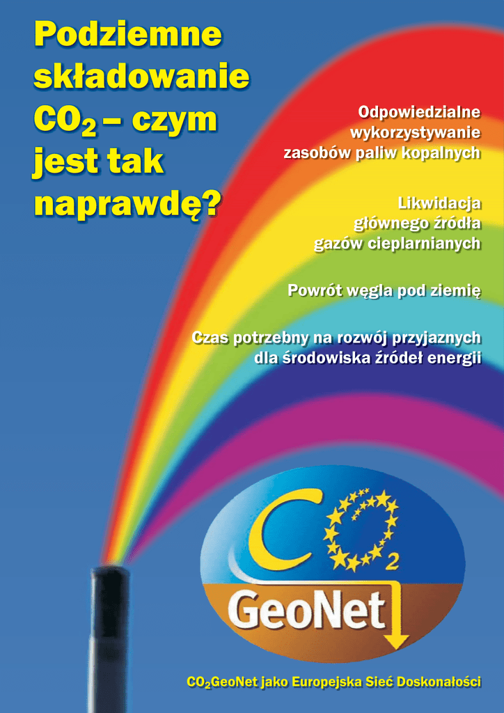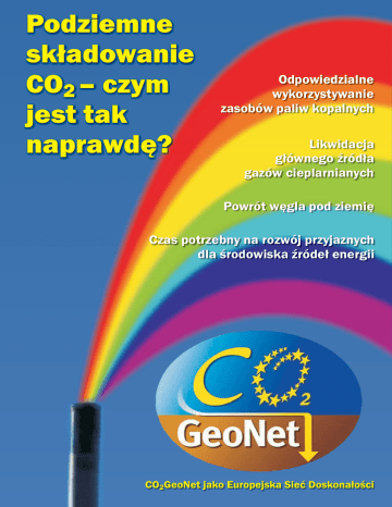 Podziemne składowanie CO2 – czym jest tak naprawdę? Odpowiedzialne wykorzystywanie zasobów paliw kopalnych Likwidacja głównego źródła gazów cieplarnianych Powrót węgla pod ziemię Czas potrzebny na rozwój przyjaznych dla środowiska źródeł energii CO2GeoNet jako Europejska Sieć Doskonałości Spis treści Zmiana klimatu i konieczność podziemnego składowania CO2 . . . . . . . . . . . . . . . . . . . . . . . . . . . . . . . . . . . . . . . . . . . . . . . . . . . 4 1. Gdzie i ile CO2 możemy składować pod ziemią? . . . . . . . . . . . . . . . . . . . . . . . . . . . . . . . . . . . . . . . . . . . . . . . . . . . . . . 6 2. W jaki sposób możemy transportować i zatłaczać ogromne ilości CO2 ? . . . . . . . . . . . . . . . . . . . . . . . . . . . . . . . . . . . . . 8 3. Co się dzieje z CO2 zatłoczonym do podziemnego zbiornika? . . . . . . . . . . . . . . . . . . . . . . . . . . . . . . . . . . . . . . . . . . 10 4. Czy CO2 może wyciec ze zbiornika i jakie mogą być tego skutki? . . . . . . . . . . . . . . . . . . . . . . . . . . . . . . . . . . . . . . 12 5. Jak możemy monitorować miejsce składowania CO2 w głębi ziemi i na jej powierzchni? . . . . . . . . . . . . . . . . . . . . . . . . . . . . . . . . . . 14 6. Jakie kryteria bezpieczeństwa należy zastosować ? . . . . . . . . . . . . . . . . . . . . . . . . . . . . . . . . . . . . . . . . . . . . . . 16 Słownik . . . . . . . . . . . . . . . . . . . . . . . . . . . . . . . . . . . . . . . . . . . . . . . . . . . . . . . . . . 18 Co może zrobić dla ciebie CO2GeoNet ? . . . . . . . . . . . . . . . . . . . . . . . . . . . . . . . . 19 Broszura powstała dzięki współpracy następujących osób: Rob Arts, Stanley Beaubien, Tjirk Benedictus, Isabelle Czernichowski-Lauriol, Hubert Fabriol, Marie Gastine, Ozgur Gundogan, Gary Kirby, Salvatore Lombardi, Franz May, Jonathan Pearce, Sergio Persoglia, Gijs Remmelts, Nick Riley, Mehran Sohrabi, Rowena Stead, Samuela Vercelli, Olga Vizika-Kavvadias. 2 Wizja przyszłości © Sapienza URS Nigdy więcej dymiących kominów Rurociągi przenoszą CO2 i składują go pod ziemią Jest to z korzyścią dla Ziemi Massimo, lat 10, Rzym – Włochy Dla naszych dzieci podziemne składowanie CO2 ma sens 3 Podziemne składowanie CO2 – czym jest tak naprawdę? Zmiana klimatu i konieczność podziemnego składowania CO2 mysłowych i dla transportu sprawia, że nieprzerwanie zwiększa s ię ilość CO2 emitowanego do atmosfery (ryc. 1). Praktycznie połowa dwutlenku węgla wyemitowanego do atmosfery przez człowieka jest wchłaniana przez rośliny i rozpuszczana w wodach oceanicznych. Powoduje to zakwaszenie wód oraz wywiera negatywny wpływ na organizmy morskie. Pozostała część CO2 wyemitowanego przez człowieka gromadzi się w atmosferze, przyczyniając się do zmian klimatu. Dwutlenek węgla należy do gazów cieplarnianych, które zatrzymują część promieni słonecznych odbitych od powierzchni Ziemi, powodując jej ocieplenie. Dlatego należy podjąć natychmiastowe działania mające na celu zatrzymanie wzrostu stężenia CO2 w atmosferze, wynoszącego obecnie 387 ppm ( współcześnie odnotowuje się jego 38% wzrost w porównaniu z okresem preindustrialnym), do krytycznego poziomu 450 ppm, powyżej którego, według ekspertów, poważne konsekwencje nadmiernej emisji CO2 będą nieuniknione. Nadmierna emisja CO2 do atmosfery Rycina 1 Światowa emisja antropogenicznego CO2 wynosi 30 miliardów ton (Gt) na rok, co odpowiada 8,1 Gt czystego węgla, z czego 6,5 Gt pochodzi ze spalania paliw kopalnych, a 1,6 Gt z wycinania lasów i działalności rolniczej Działalność człowieka zakłóca cykl obiegu węgla na naszej planecie. Przez ok. 10 000 lat ten bardzo dobrze zrównoważony cykl obiegu, w skład którego wchodziły naturalne procesy wymiany węgla pomiędzy geosferą, biosferą, hydrosferą i atmosferą, skutkował małą zawartością CO2 w atmosferze (ok. 280 ppm, tj. 0,028%). Jednak przez ostatnie 250 lat, od początków rewolucji przemysłowej, spalanie paliw kopalnych (węgla, ropy naftowej i gazu ziemnego) w celu pozyskania energii elektrycznej, energii cieplnej dla celów prze- Przepływ CO2 pomiędzy skorupą ziemską a atmosferą w 1997 roku (w miliardach ton węgla na rok) Przepływ Atmosfera antropogeniczny 3,5 Zmiany (750) (4200) Zasoby węgla Przepływ naturalny klimatu 6,5 2,0 120 Powrót węgla pod ziemię 2,5 Roślinność (650) 180 Zakwaszanie Gleby (1500) Węgiel kopalny (4200) Ocean (39 040) Skała osadowa (50 000) Rycina 2 Regiony bogate w CO2 we Francji VICHY © BRGM im@ge 1,6 Wydobywane wody nasycone CO2 (pitne, uzdrowiskowe) Naturalne złoża CO2 SAINT-YORRE BADOIT MONT-DORE n Roda MONTMIRAL MONTOISON CAUDES-AIGUES Masyw Centralny VALS-LES-BAINS Alpy AMELIE VILLE NEUVE-DE-BERG QUEZAC QUISSAC Wychwytywanie i składowanie CO2 obiecującą drogą zmniejszenia jego nadmiernej emisji spowodowanej działalnością człowieka ANGLES VACQUIERER PERRIER VERNIERE Morze Śródziemne JOUQUES © BRGM im@ge VAUNAGE SALVETAT Świat, w którym żyjemy, jest bardzo uzależniony od paliw kopalnych (geneza tego związku jest ściśle związana z erą przemysłową lat pięćdziesiątych XVIII wieku). Nasza transformacja w społeczeństwo bazujące na przyjaznym dla środowiska źródle energii będzie wymagać czasu i dużych nakładów finansowych. Tak naprawdę pilnie potrzebujemy krótkoterminowego rozwiązania, które pomoże ograniczyć naszą zależność od paliw kopalnych, wykorzystując je w sposób nieszkodliwy dla środowiska. Dzięki temu uzyskamy czas potrzebny na rozwinięcie technologii i infrastruktury odnawialnych źródeł energii. Jedną z możliwości jest stworzenie zamkniętego cyklu w systemie produkcji energii, dzięki któremu pierwiastek węgiel wydobyty z ziemi w formie gazu ziemnego, ropy naftowej lub węgla będzie z powrotem do niej zatłaczany w postaci dwutlenku węgla. Co ciekawe, podziemne składowanie CO2 nie jest po