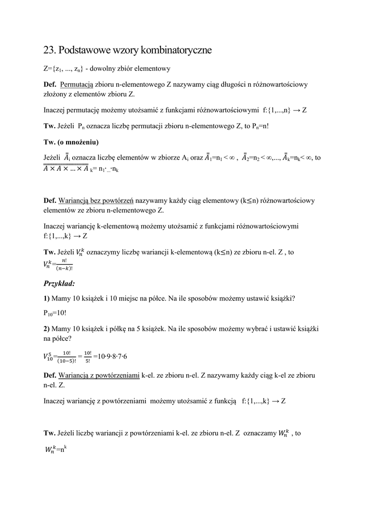oznaczymy liczbę wariancji k-elementową (k n) ze zbioru n-el. Z , to
