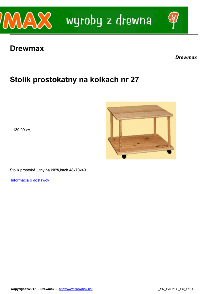Drewmax Drewmax Stolik prostokatny na kolkach nr 27 139.00 zÅ‚ Stolik prostokÄ…tny na kółkach 48x70x40 Informacja o dostawcy Copyright ©2017 - Drewmax - http://www.drewmax.net _PN_PAGE 1 _PN_OF 1
