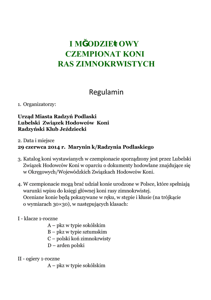 Regulamin(kliknij) - Lubelski Związek Hodowców Koni