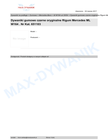 Utworzono : 02 marzec 2017 Dywaniki na podłoge > Gumowe > Mercedes-Benz > M W164 od 2005r > Dywaniki gumowe czarne oryginalne Rigum Me Dywaniki gumowe czarne oryginalne Rigum Mercedes ML W164 . Nr Kat. 651103 Model : - No image Producent : - Y D X A M kontakt : - [email protected] Strona 1/{nb} K I N A W Dostępność: Produkt dostępny w naszym sklepie od