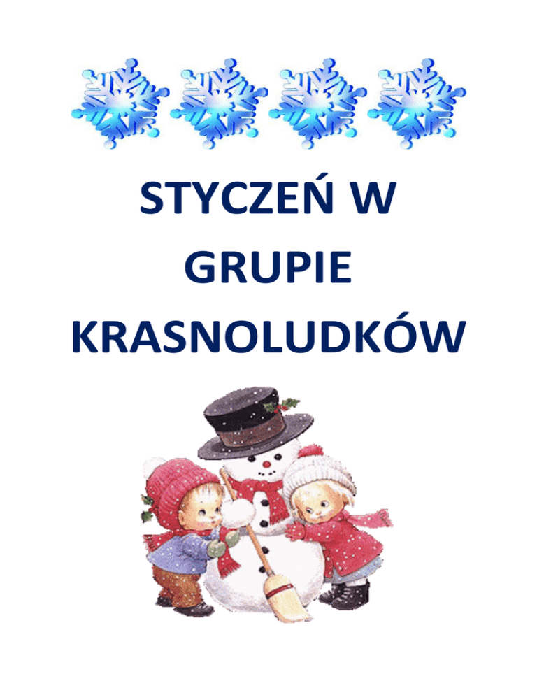 STYCZEŃ W GRUPIE KRASNOLUDKÓW W Nowy Rok weszliśmy żwawym krokiem i w świetnych humorach, gdyż czekały nas, jak się później okazało niezapomniane chwile. W pierwszym tygodniu stycznia rozmawialiśmy na temat naszych małych przyjaciół ptaszków i innych zwierząt, którym tak trudno przetrwać zimę. Teraz już wiemy jak ważne jest dokarmianie zwierząt, szczególnie o tej porze roku. Wysłuchaliśmy wierszyka „Przy karmniku”, ilustrowanego sylwetami i udało nam się umieścić ptaszki nad, pod, w karmniku. Nie zabrakło również opowiadania „Zimowi przyjaciele”, które nas bardzo zainteresowało. Wykonaliśmy także ciekawą pracę plastyczną, naklejając na kartkę pomalowaną na niebiesko karmnik, a w nim ptaszki z kółek. Potrafimy nawet nazwać niektóre z nich. Jednym z bardziej znanych nam, jest wróbelek, o którym śpiewaliśmy piosenkę i bawiliśmy się w jej rytmie. Wiemy też że ptasia stołówka to karmnik, nawet przeliczaliśmy domki ptaszków próbując określić, który z nich jest niebieski, zielony, pomarańczowy i brązowy. Kolejna praca plastyczna polegała na wyklejeniu sylwety ptaszka kuleczkami z plasteliny i poszło nam to całkiem sprawnie. Temat który okazał nam się szczególnie bliski i zajął aż dwa tygodnie, dotyczył naszych babć i dziadków. Rozpoczęliśmy go od wysłuchania opowiadania „Moja rodzina”, nazywając jej poszczególnych członków. Trwały też przygotowania do ważnej uroczystości, jaką był „Dzień Babci i Dziadka”, dlatego też uczyliśmy się piosenki „Najdroższy dziadku” i „Serce babci”, oraz wesołą piosenkę „Popatrzcie na jamniczka”, którą często śpiewała z nami pani Magda. Udało nam się również wykonać zaproszenia dla naszych bliskich. Nie zabrakło też wesołych zabaw przy piosence „Nasza babcia”. Oprócz zajęć muzycznych, wysłuchaliśmy także opowiadania o przysmakach dla babci i dziadka, na podstawie którego układaliśmy historyjkę obrazkową. Z okazji ich święta, wykonaliśmy dla naszych bliskich drobne upominki. Dla babci obrazek z pięknymi kwiatami, a dla dziadka ozdobiliśmy krawat, według własnego pomysłu. Oczekując tego ważnego dnia utrwalaliśmy nasz program artystyczny, gdyż bardzo nam zależało żeby się dobrze zaprezentować. Odgadywaliśmy zagadki słowne i rysowaliśmy też portrety babć i dziadków. Wreszcie nadszedł długo wyczekiwany dzień. Podekscytowani i troszkę stremowani wyrecytowaliśmy wierszyki i zaśpiewaliśmy piosenki dla naszych gości. Widać było że babciom i dziadkom bardzo podobał się nasz występ. Miło też zaskoczyliśmy ich wykonanymi przez siebie upominkami. Dziadkowie nawet założyli nasze krawaty, w których prezentowali się świetnie. Od babć i dziadków dostaliśmy pyszne wafelki, za które bardzo dziękujemy. Mogliśmy skosztować też piernika, który upiekła mama Maksia i bardzo nam smakował. Jeszcze długo wspominaliśmy tę miłą uroczystość, często rozmawiając na jej temat i kolorując obrazki przedstawiające babcię i dziadka. Improwizowaliśmy też ruchem piosenkę „Kłótnia o dziadka”. Pani przeczytała nam pouczające opowiadanie „Pomagamy starszym”, które uświadomiło nam jak ważne jest wspieranie i pomaganie osobom starszym. Wzięliśmy też udział w zabawach artykulacyjnych i słuchowych „Przyjęcie u babci Weroniki”. Interesującym zagadnieniem okazał się również karnawał. Opowiadaliśmy naszej pani za kogo chcemy być przebrani na balu. Udało nam się również rozpoznać, za kogo przebrane są dzieci na obrazkach. Z wielką niecierpliwością oczekiwaliśmy tego ważnego dnia czyli balu przebierańców w przedszkolu. Każdy z nas przygotowany miał pomysłowy strój na tę okazję. W dzień balu byliśmy bardzo zaintrygowani, bo do końca nie wiedzieliśmy jakie niespodzianki nas czekają. Każdy zaprezentował swój niepowtarzalny strój. Nawet panie nie zapomniały o przebraniu. Nasza sala zamieniła się w prawdziwą karnawałową salę balową, ozdobioną pięknymi girlandami i kolorowymi balonami. Z racji tego że bal odbył się pod hasłem „W krainie bajek”, nie zabrakło zagadek i zabaw związanych z różnymi dobrze znanymi nam bajkami. Były też pląsy przy piosenkach, a najbardziej podobał nam się taniec z bańkami mydlanymi, które wypuszczane były ze specjalnego urządzenia. Ten dzień był pełen wrażeń, dlatego też po karnawałowym zabawach, szybciutko usnęliśmy na leżaczkach. Następnego dnia dzieliliśmy się wrażeniami z balu. Jak co miesiąc odwiedzili nas goście z „Małej Filharmonii”. Tym razem zaprezentowali nam instrument dęty – saksofon. Z uwagą słuchaliśmy gry na tym ciekawym instrumencie, rozróżniając dźwięki wysokie i niskie. Utrwalaliśmy tez poznane wcześniej nutki. W atmosferze karnawałowej nauczyliśmy się piosenki „Bal baloników”, tańcząc przy niej oczywiście z balonami. Były tez inne zabawy ruchowe przy użyciu tego typu rekwizytów. Taniec i zabawy ruchowe z balonami sprawiły nam wiele radości i z wielką ochotą sami wykonaliśmy własnego balonika z papieru, malując go farbami lub korkiem maczanym w farbie. Do tej pory nasze prace zdobią ścianę, a rodzice mogą je podziwiać. Poznaliśmy też różne karnawałowe dekoracje, słuchając opowiadania „Serpentyny i baloniki”. Potrafimy nawet podać ich nazwy. Jednym z trudniejszych dla nas, było słowo serpentyny. Porównywaliśmy nawet ich długości, określając które z nich są najkrótsze, a które najdłuższe. Udało nam się jeszcze raz pobawić balonikami, tym razem przy muzyce z opery „Czarodziejski flet”. Tak oto minął niezapomniany miesiąc styczeń w grupie Krasnoludków. Chcieliśmy serdecznie podziękować mamie Filipa B. za przyniesienie pięknych dekoracji na bal karnawałowy oraz babci Igi za ciekawe plansze i kawałki materiału. Dziękujemy również mamie Maksia za upieczenie pyszneg