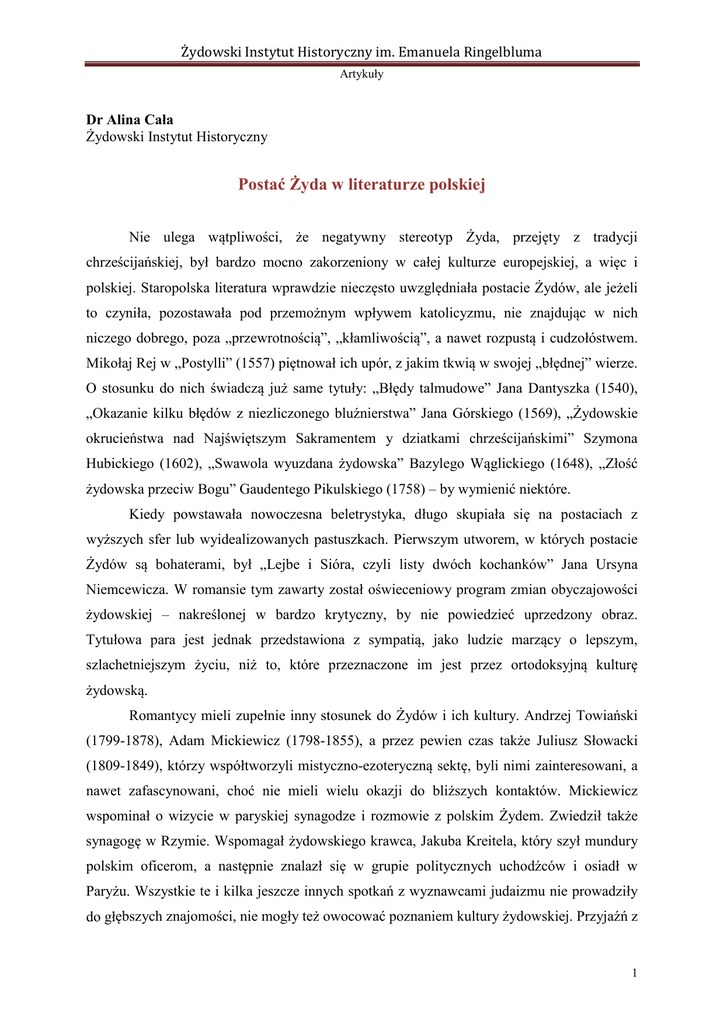 Postać Żyda w literaturze polskiej