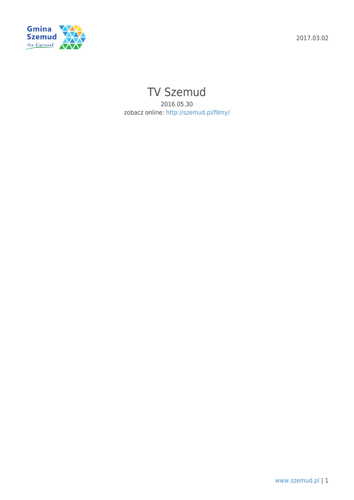 2017.03.02 TV Szemud 2016.05.30 zobacz online: http://szemud.pl/filmy/ www.szemud.pl | 1