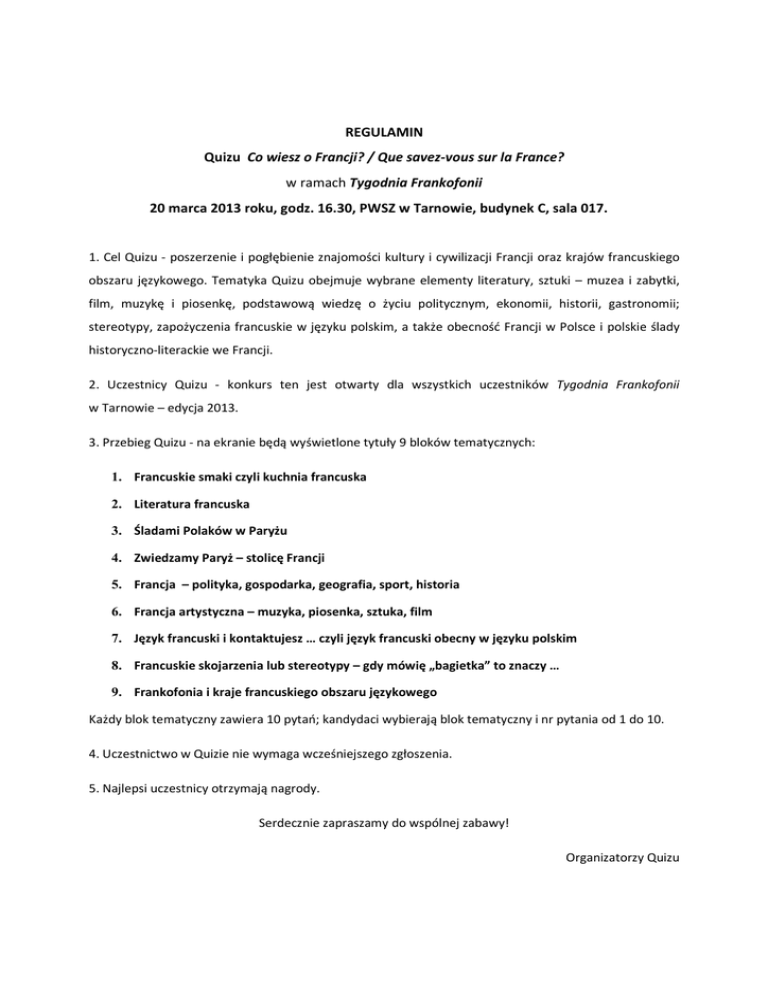 REGULAMIN Quizu Frankofonia 2013