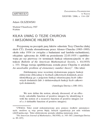 kilka uwag o tezie churcha i aksjomacie hilberta
