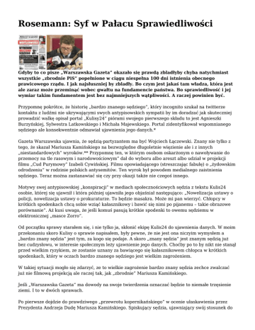 Rosemann: Syf w Pałacu Sprawiedliwości